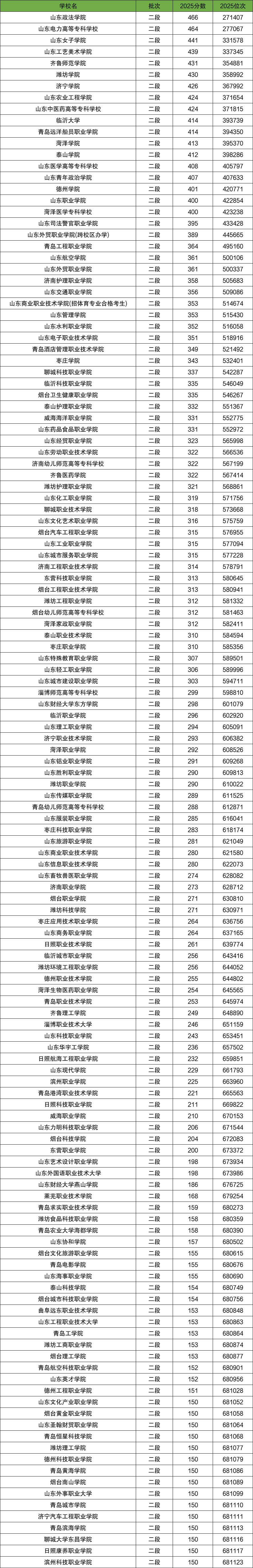 本期就展示山东2025年全国各高校最低投档分数情况,包含一段二段的本科专科所有学校分数线,供2026年选考各科目的考生参考。