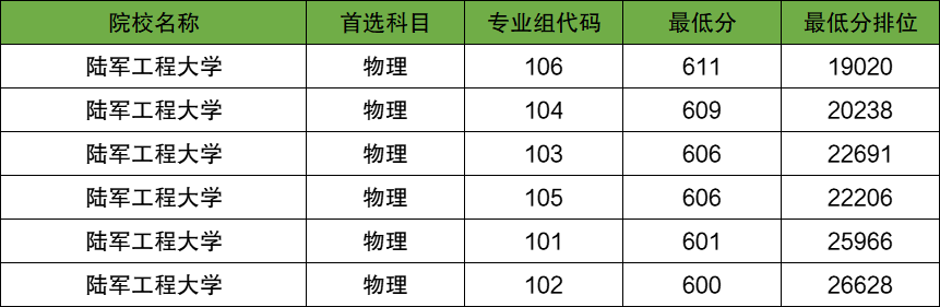2025年陆军工程大学物理科目中在江苏最低607分、湖南594分、广东600分等,本期将介绍陆军工程大学2025年的高考录取分数线,让各位了解陆军工程大学多少分能考上。