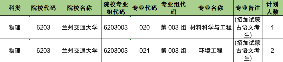 第 003 组:专业组代码为6203003,包含专业材料科学与工程、环境工程。