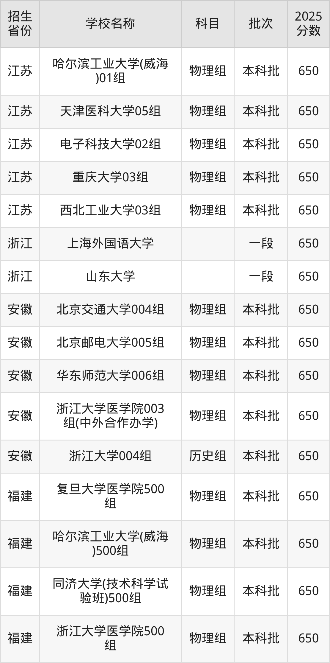 二、各省650分的重点大学名单