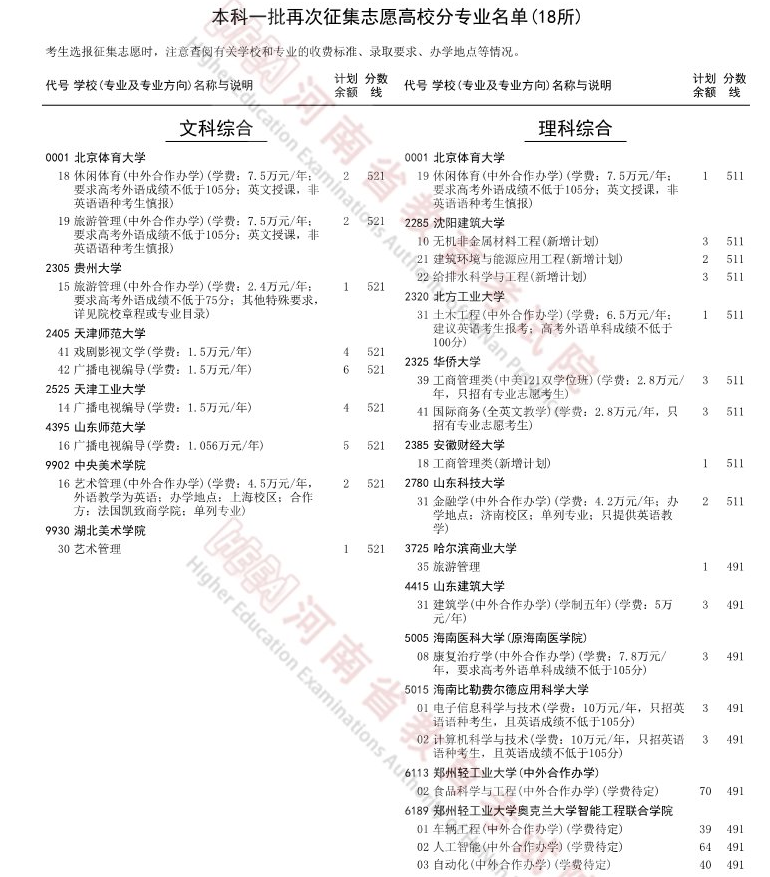关于河南普通类、体育类、艺术类的征集志愿填报时间,详情如下: