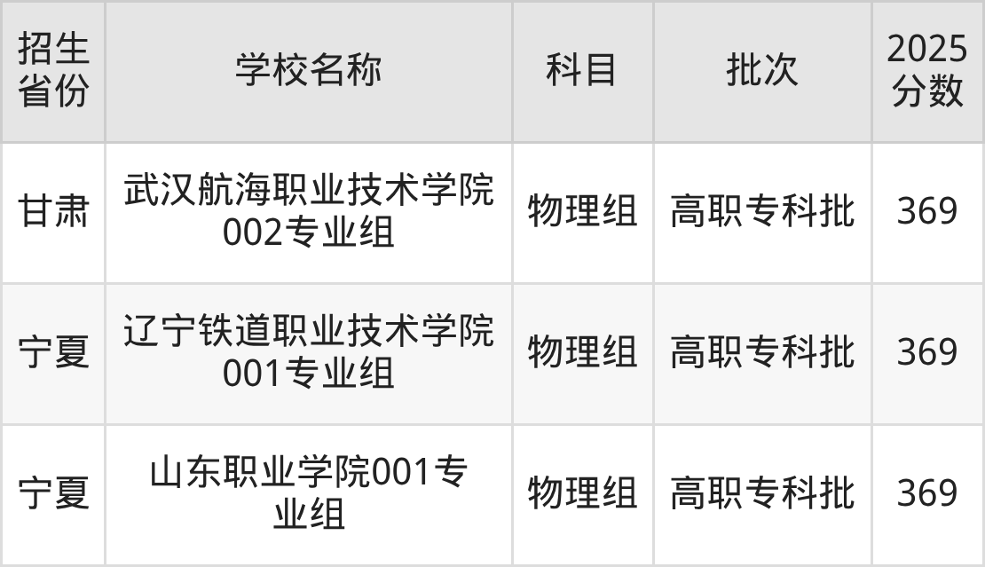 湖南省物理组分数线是369分的理科大学有:江西应用工程职业学院、山东信息职业技术学院、湖北交通职业技术学院。