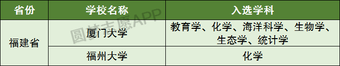 其中厦门大学有6个双一流建设学科,福州大学有1个双一流建设学科,2所大学具体双一流建设学科如下。
