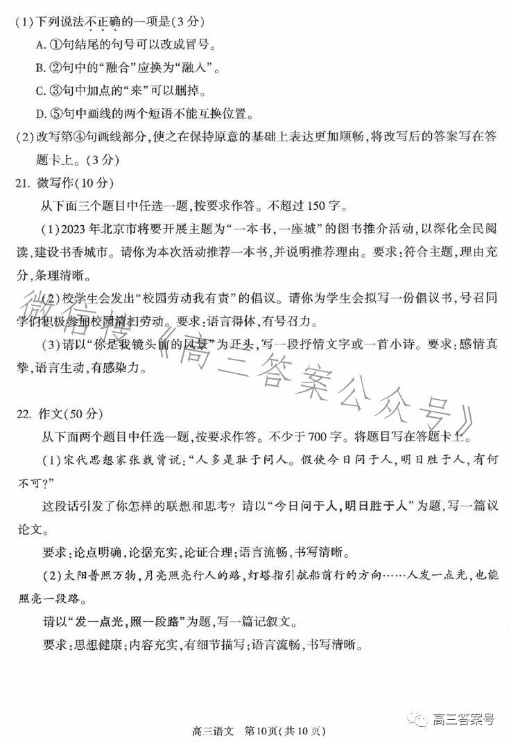 2023朝阳区高三一模所有科目试卷及答案汇总:https://www.gk100.com/read_6636580982.htm (点击或复制链接即可查看)