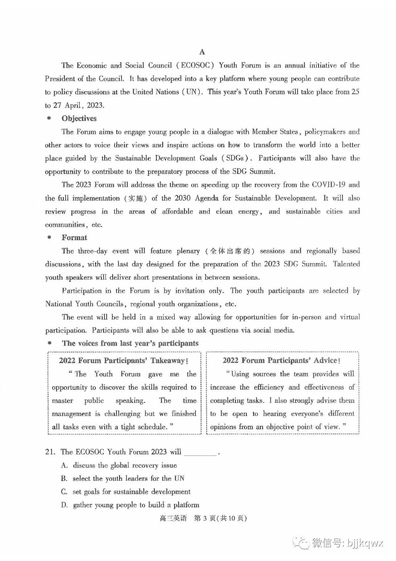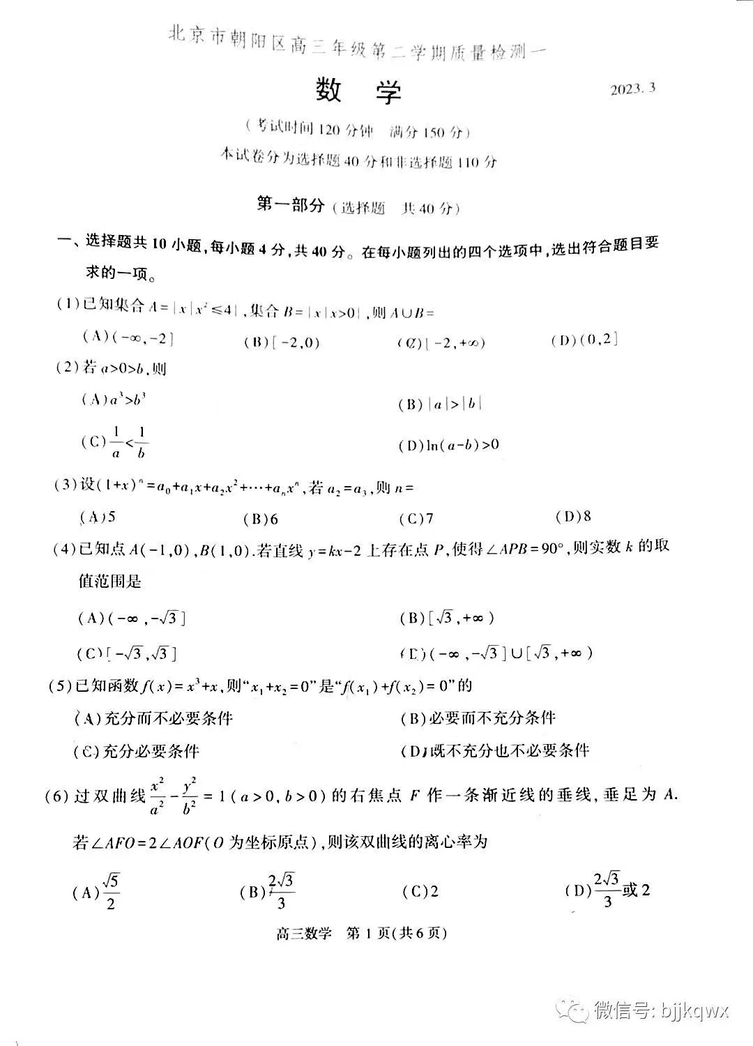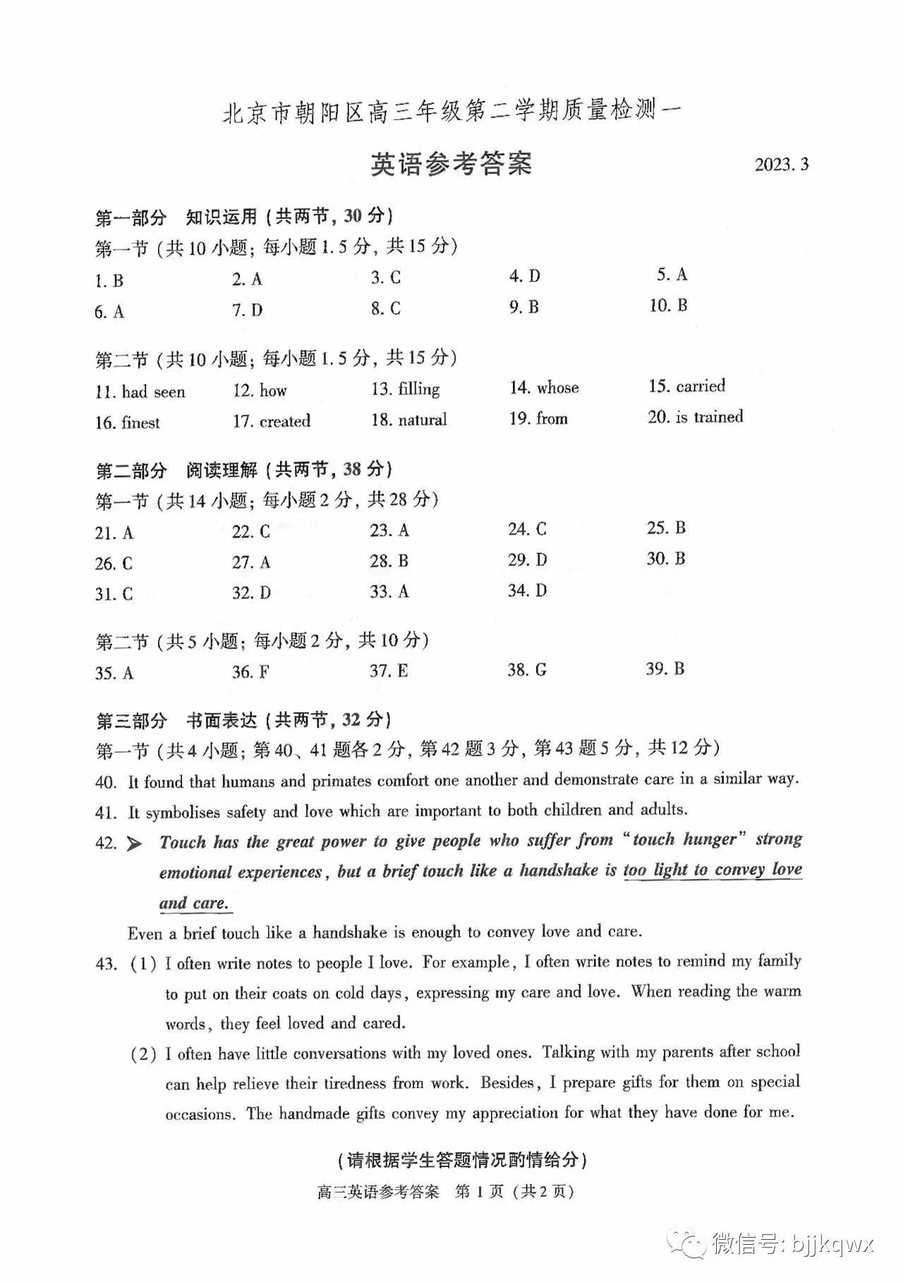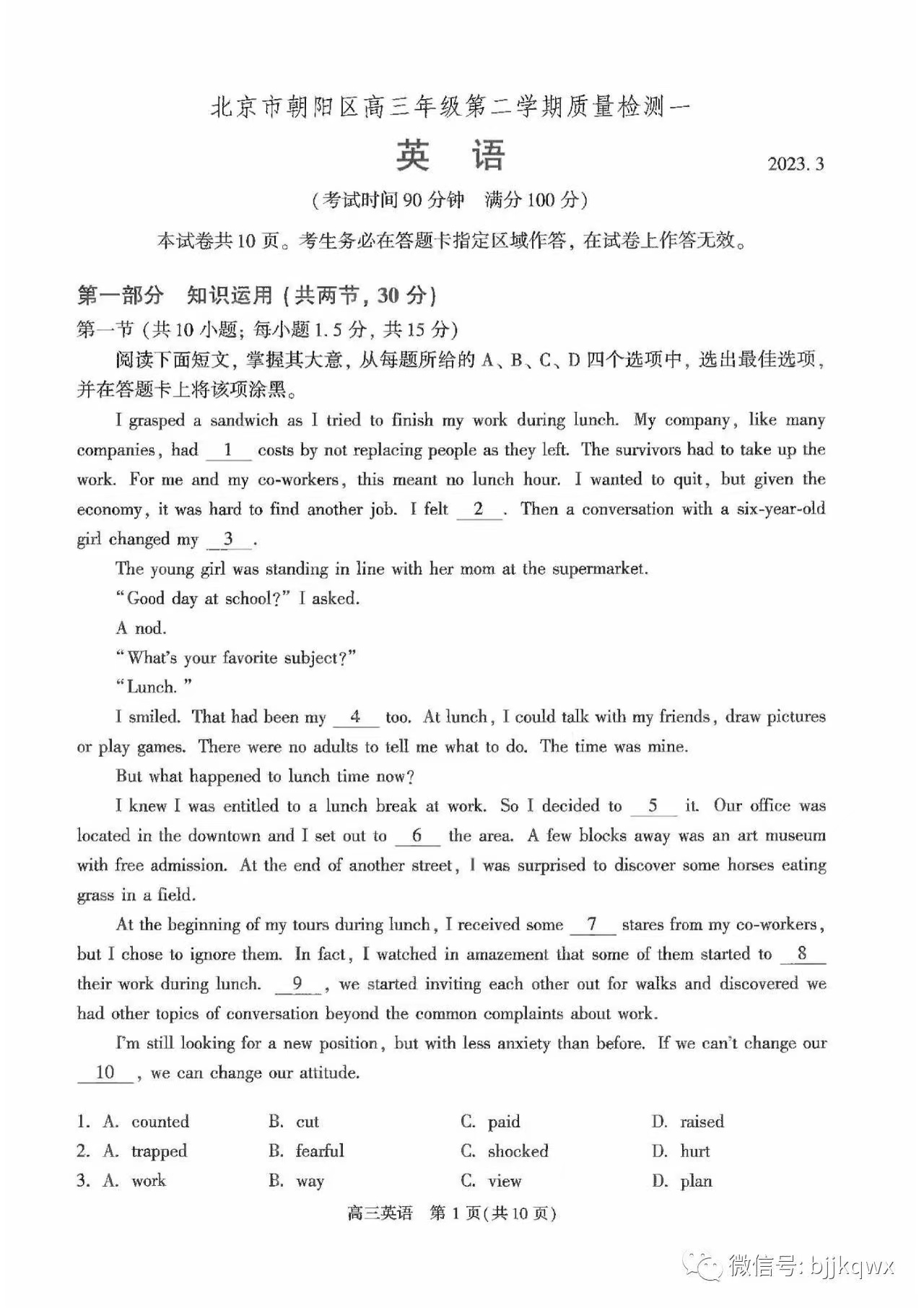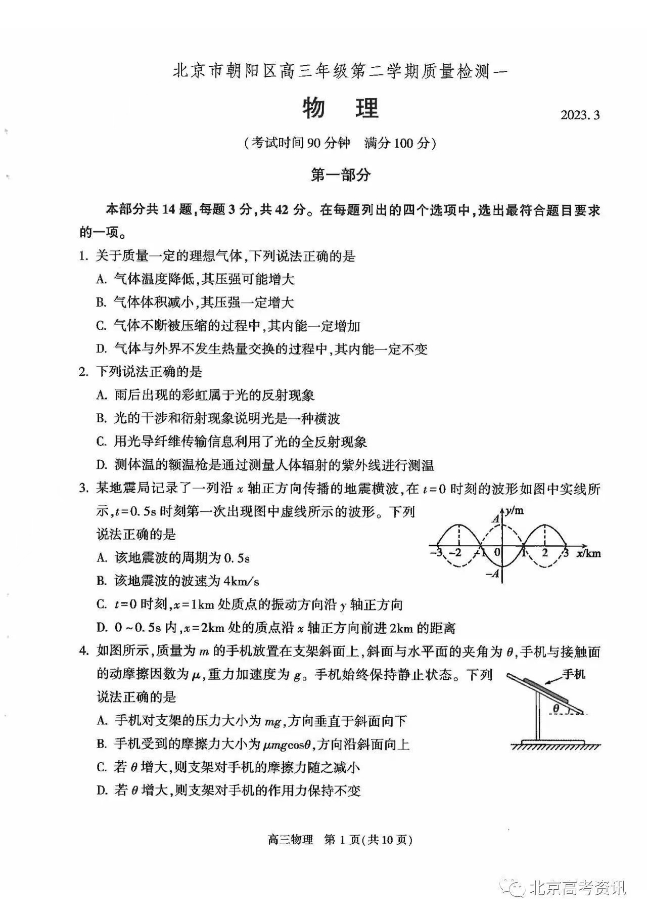 本文将公布2023届北京朝阳区高三一模所有科目试卷和答案解析,请大家持续关注本文或高考100网站。