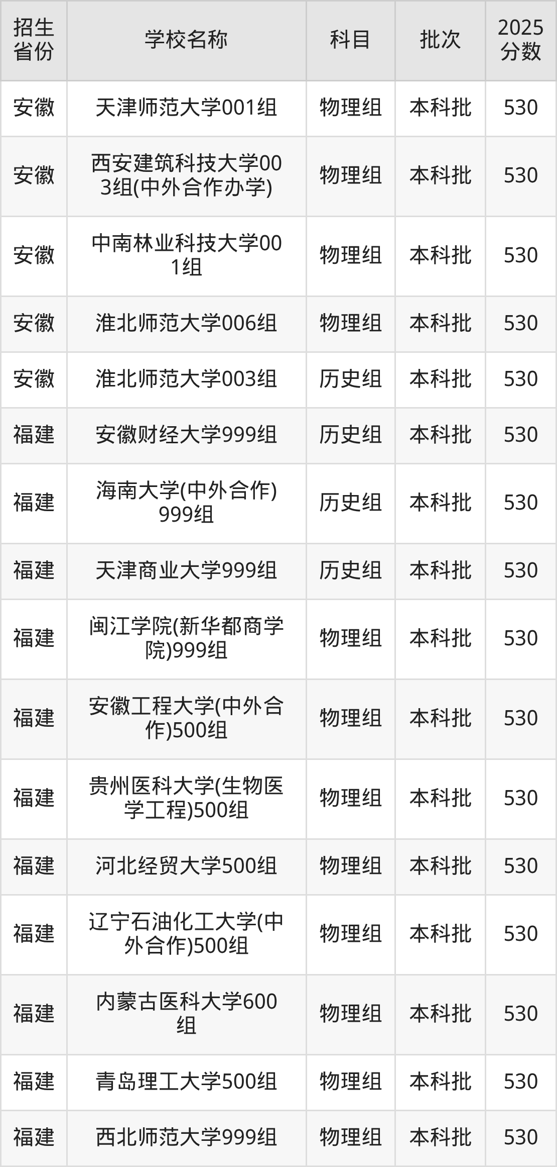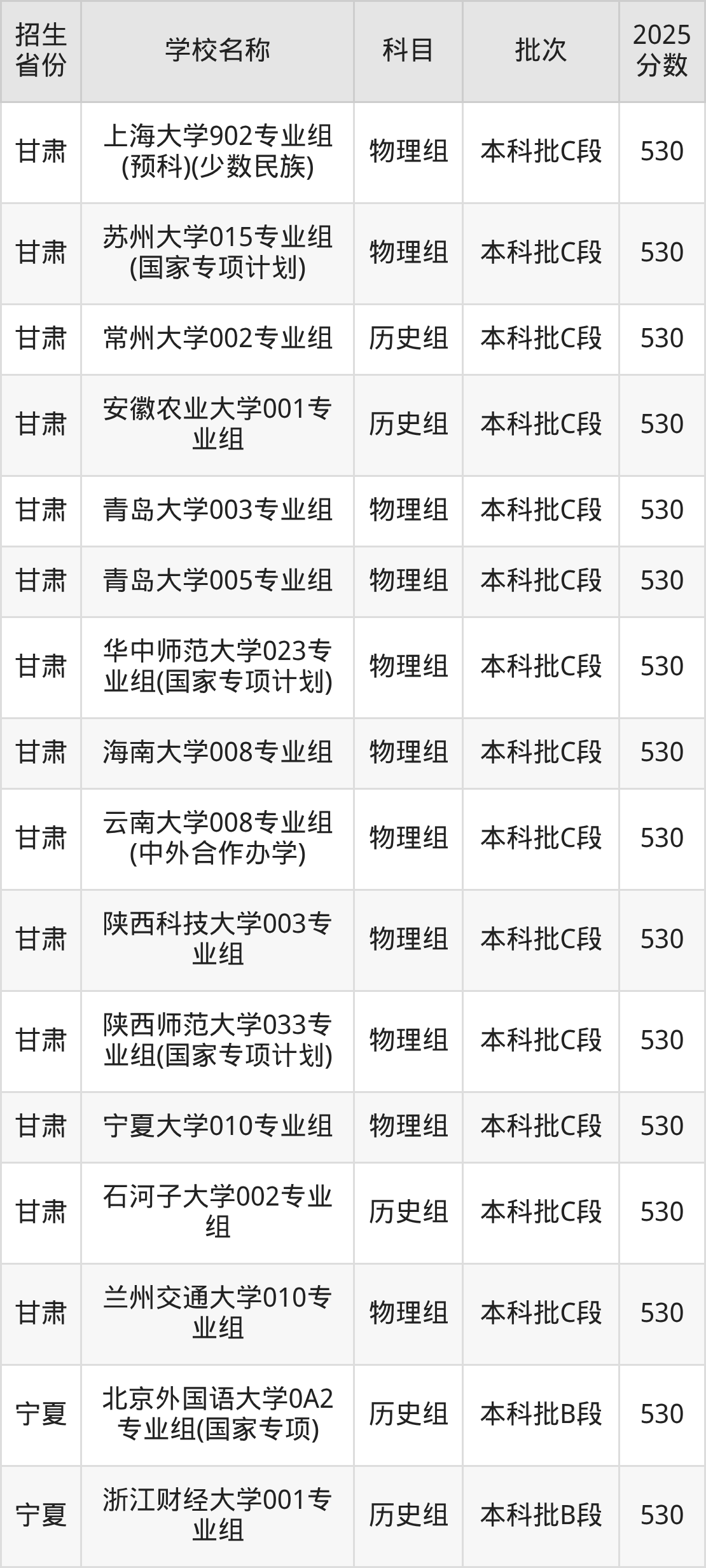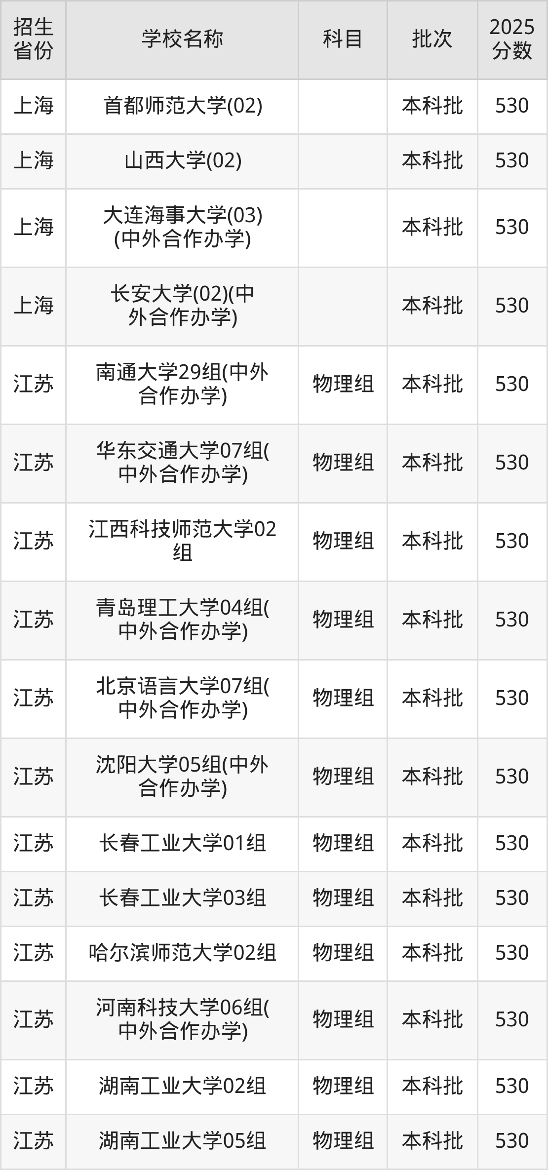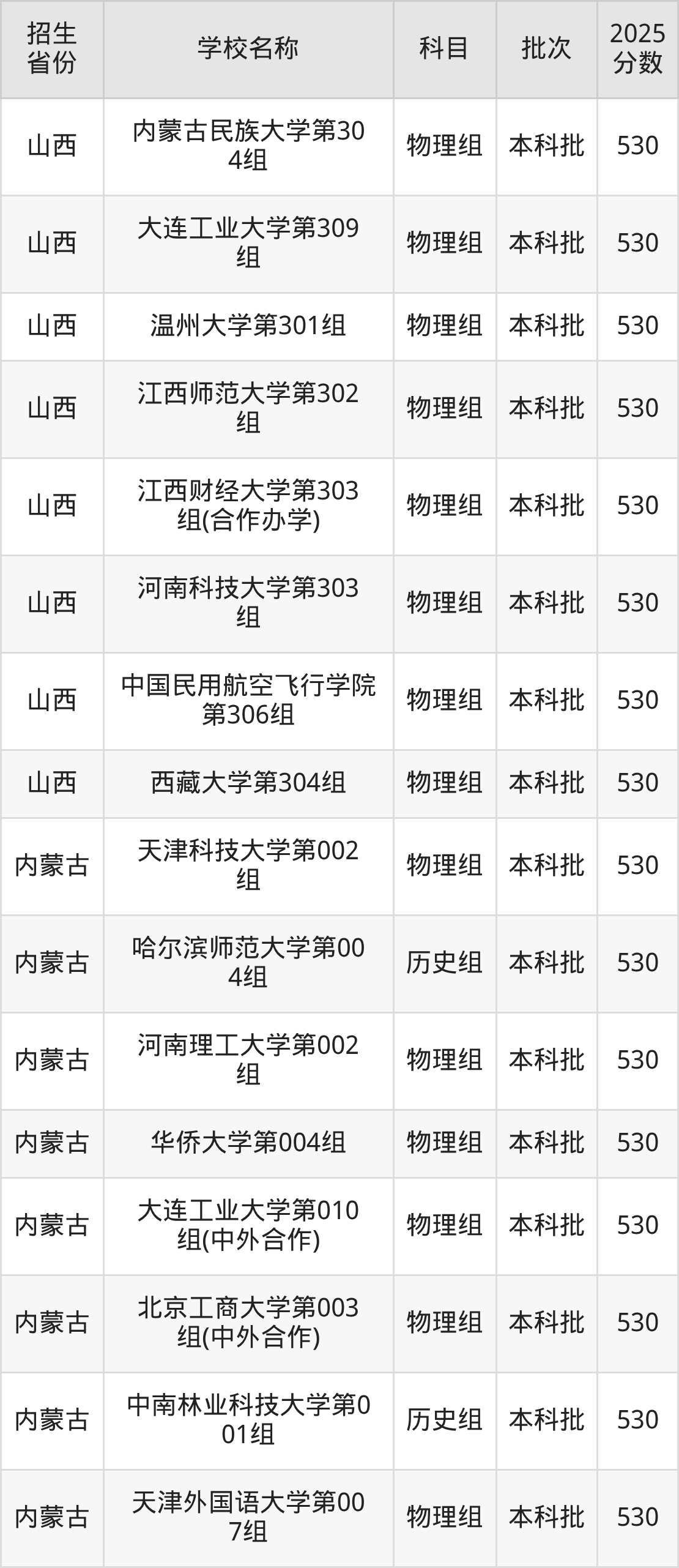 筛选全国各省2025年录取分数线为530分的重点大学如下: