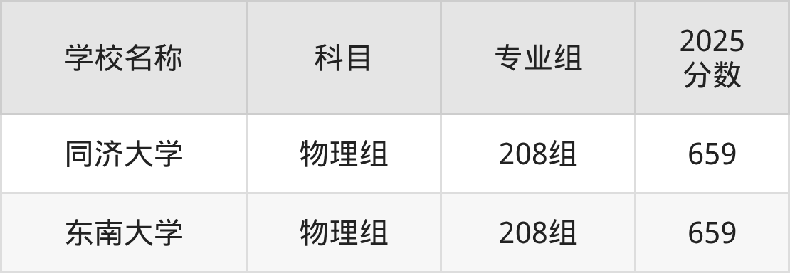 广东高考录取分数线在659分左右的公办院校专业组一共有2个,其中物理组有:同济大学(659分)、东南大学(659分)。