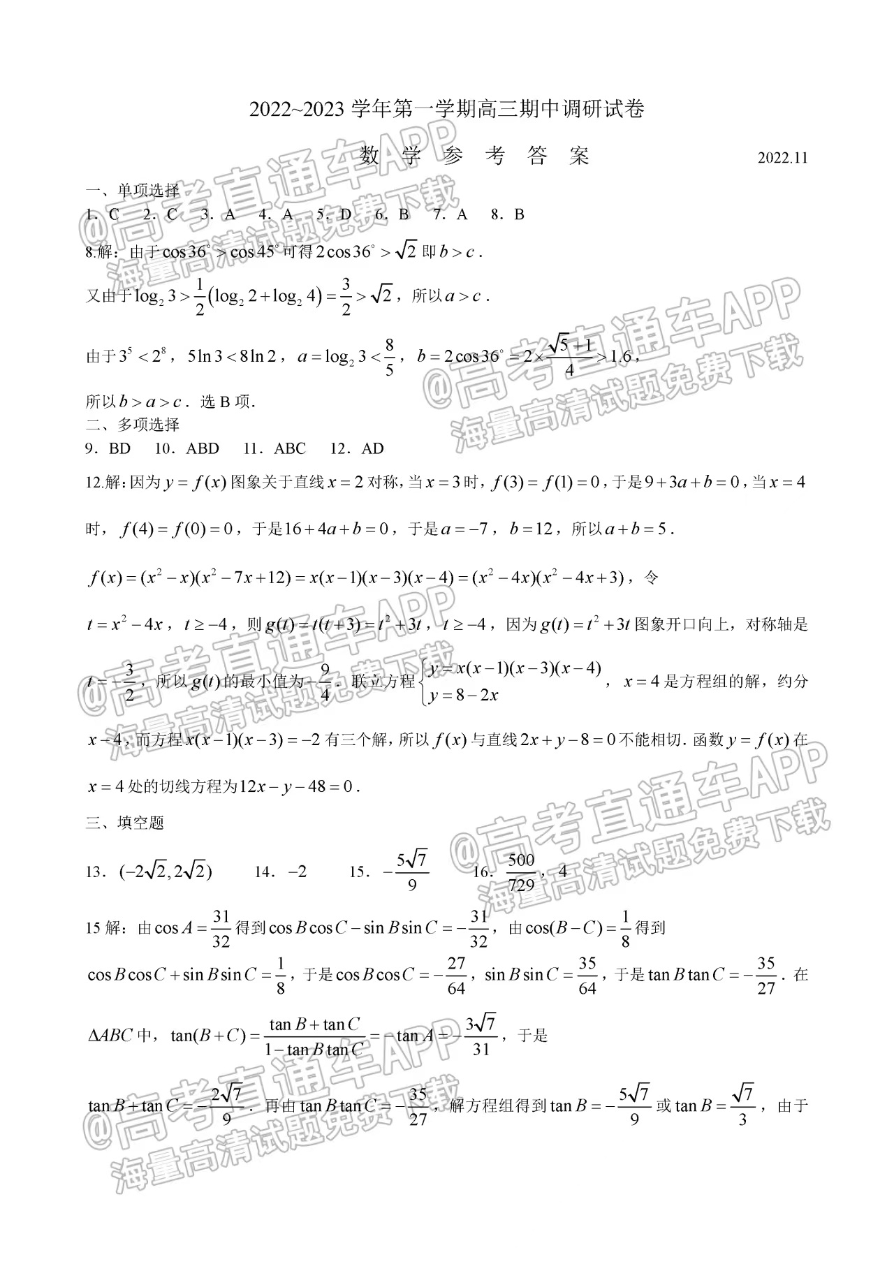 二、2023苏州高三期中考试数学答案