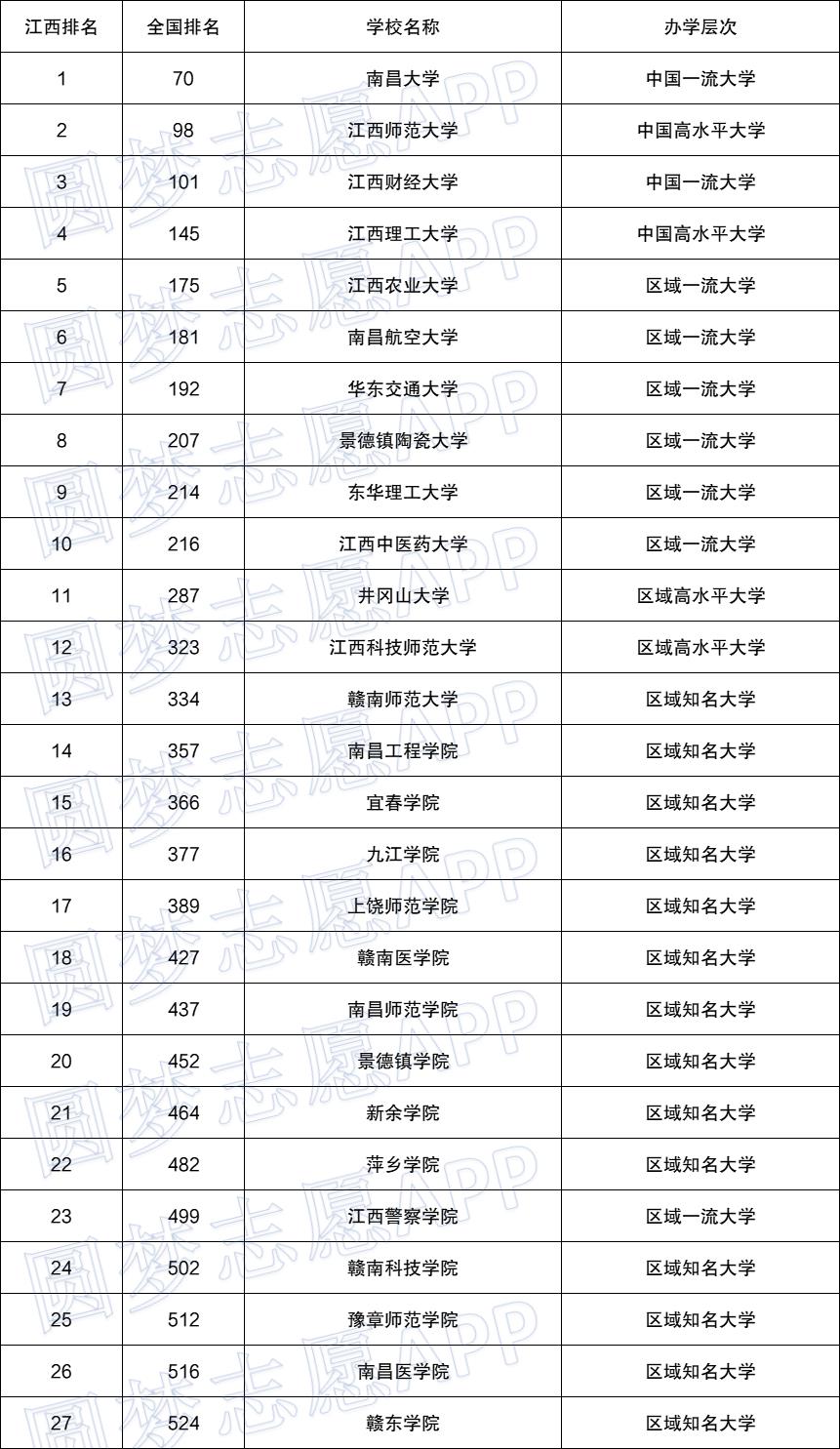 除了上面关于此次2023江西稳派联考的相关信息外,编辑在这里还为大家收集整理了江西省境内的公立本科学校在22年的最新排名情况,供各位参考了解,如下图所示: