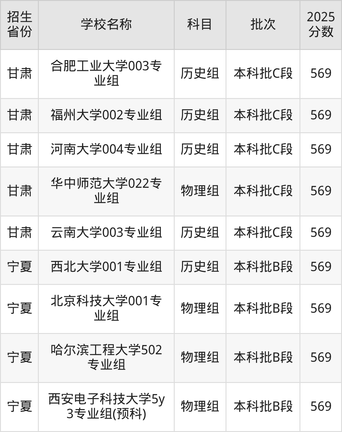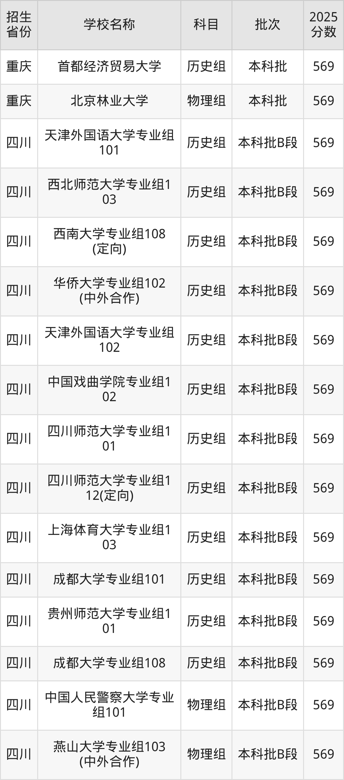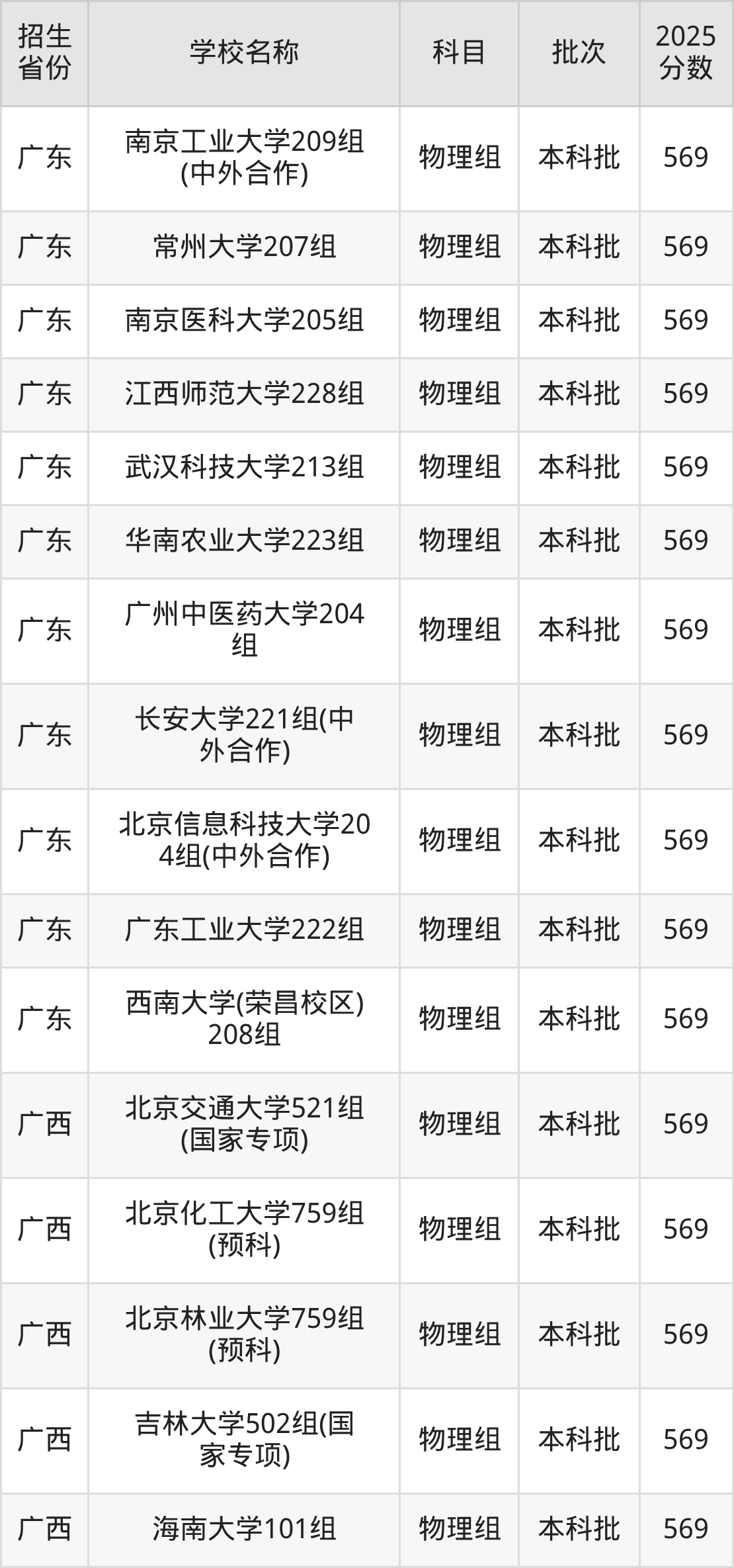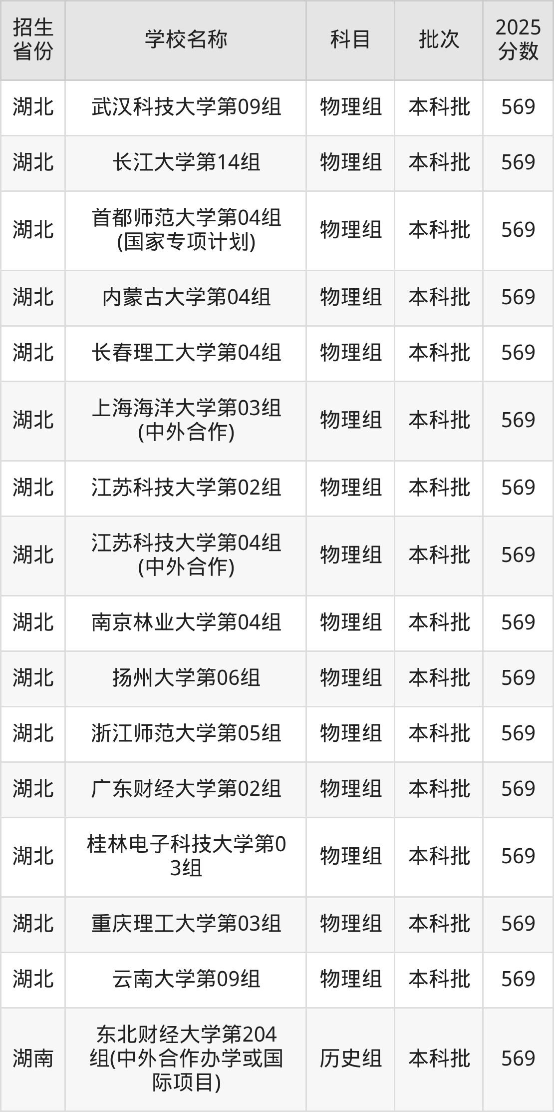 筛选全国各省2025年录取分数线为569分的重点大学如下:
