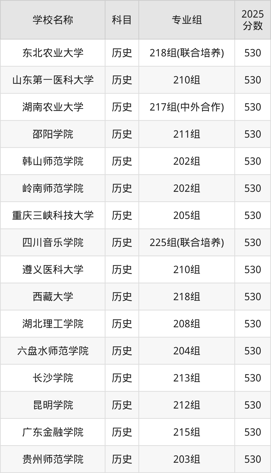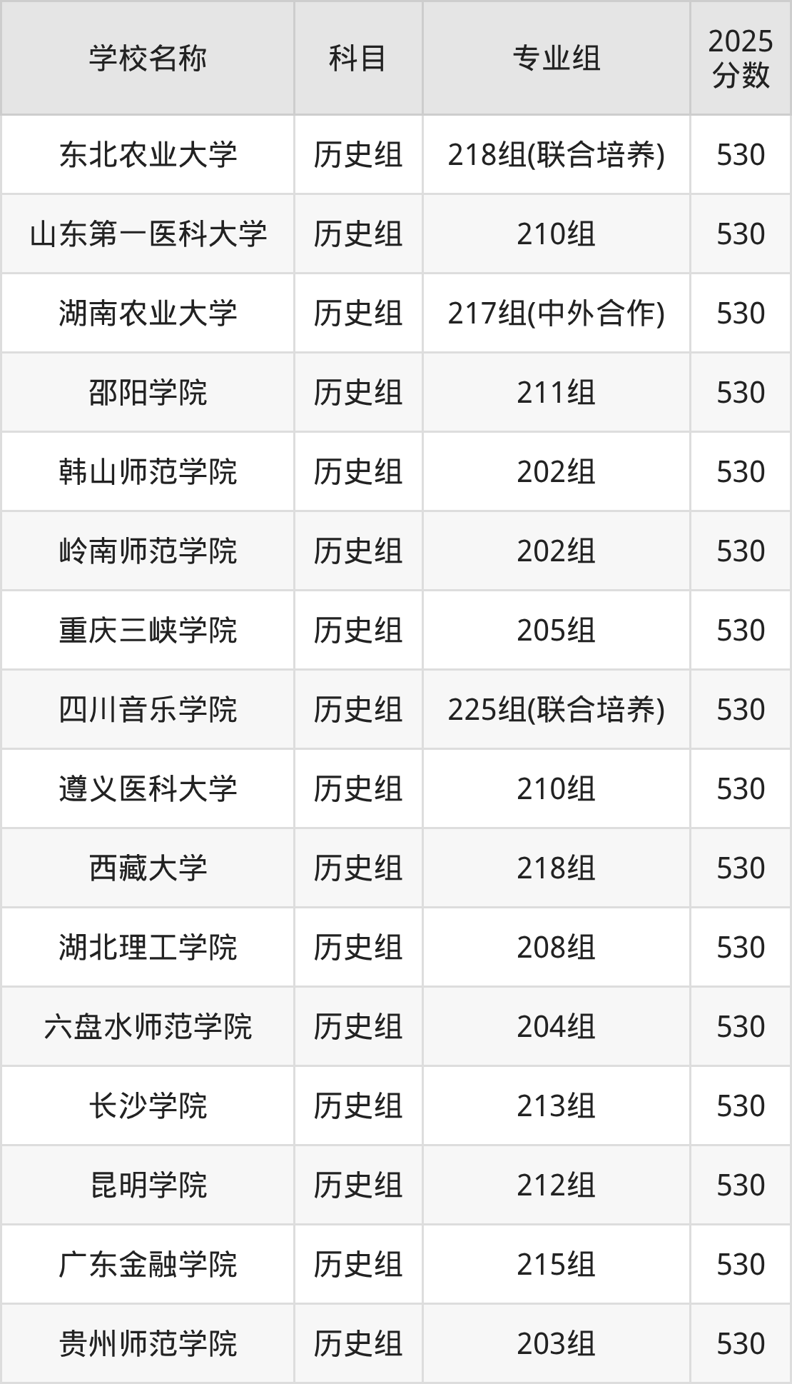 广东高考录取分数线在530分左右的公办院校专业组一共有51个,其中历史组有:东北农业大学(530分)、山东第一医科大学(530分)、湖南农业大学(530分),物理组有:天津中医药大学(530分)、河北北方学院(530分)、山西农业大学(530分)。