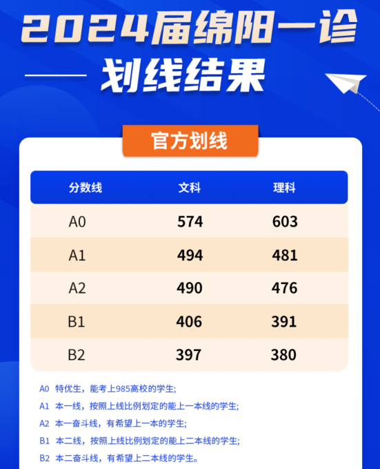 2025绵阳一诊分数线公布:物理类考生成绩429分可上本科、历史类考生成绩398分可上本科。另外绵阳一诊985线:物理类是610分、历史类是593分。