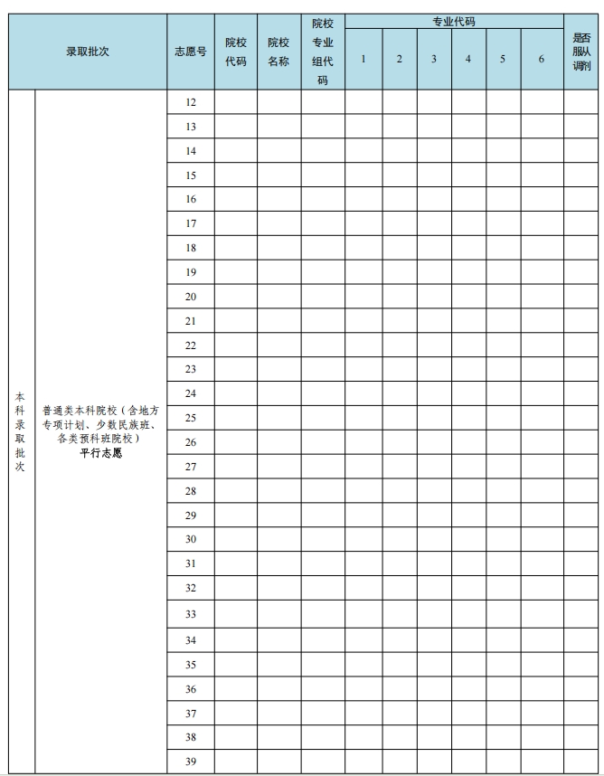 二、高考志愿填写表格样本