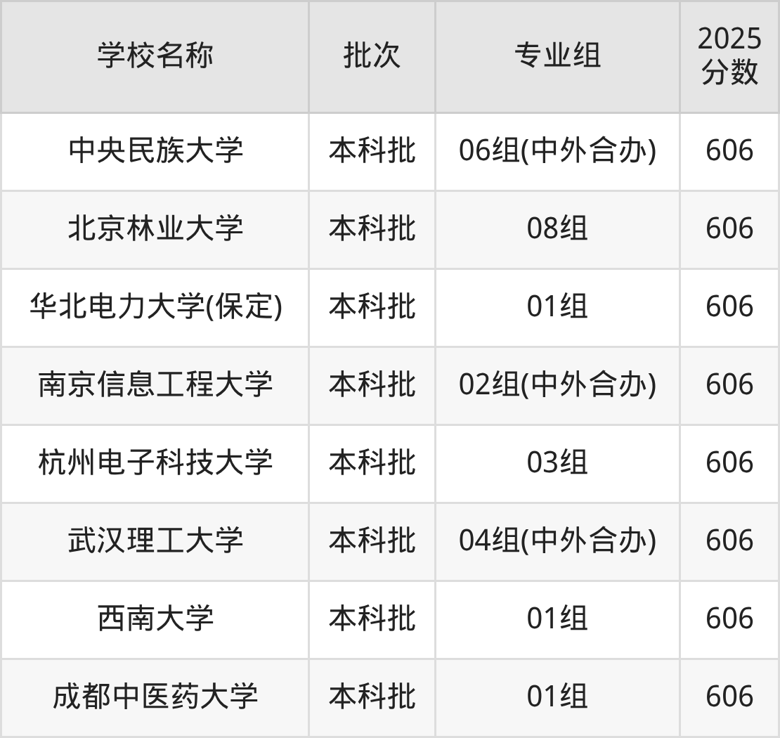 北京高考录取分数线在606分左右的公办大学一共有8所。分别是中央民族大学(606分)、北京林业大学(606分)、华北电力大学(保定)(606分)