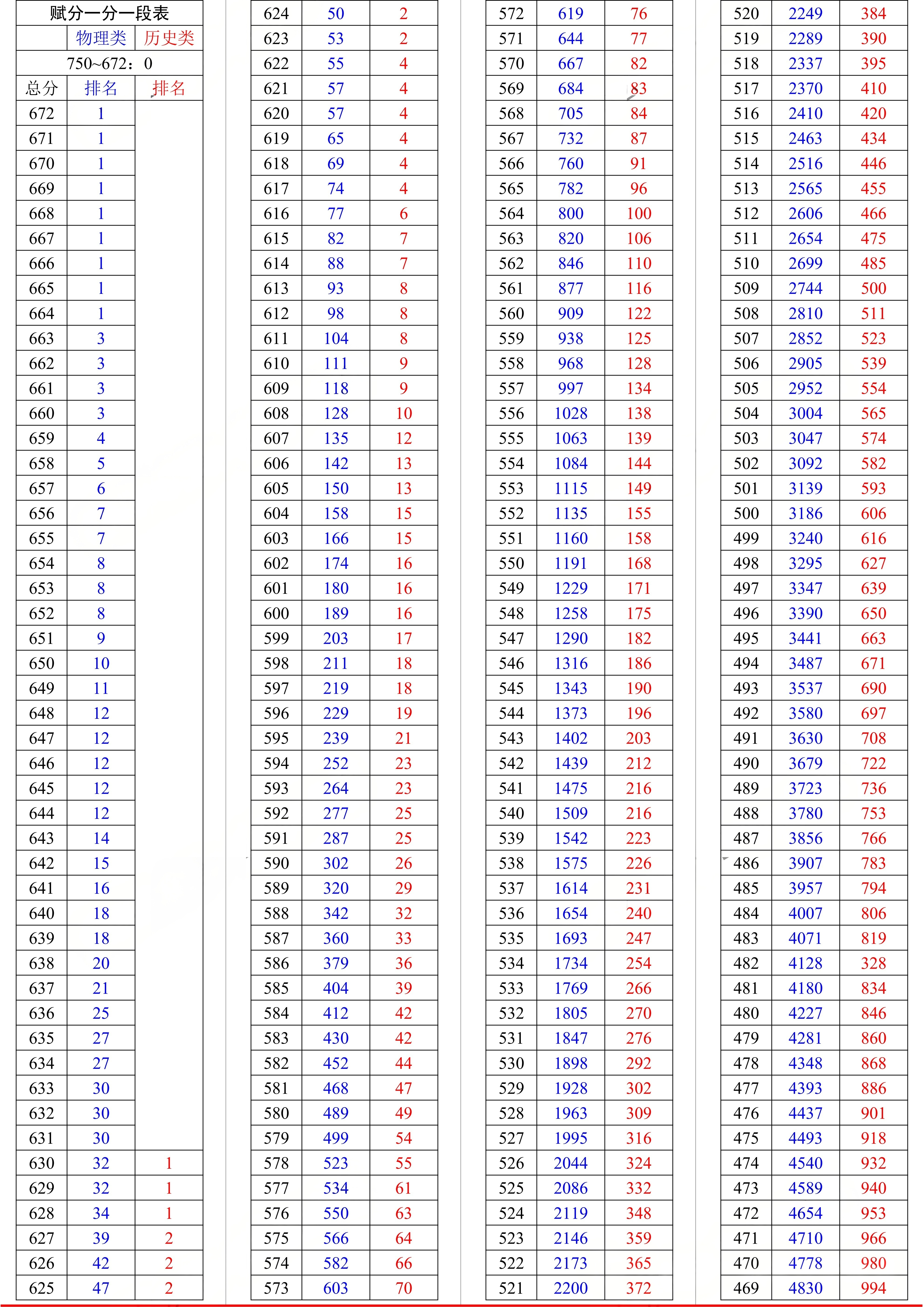 总分672分,对应排名1名;