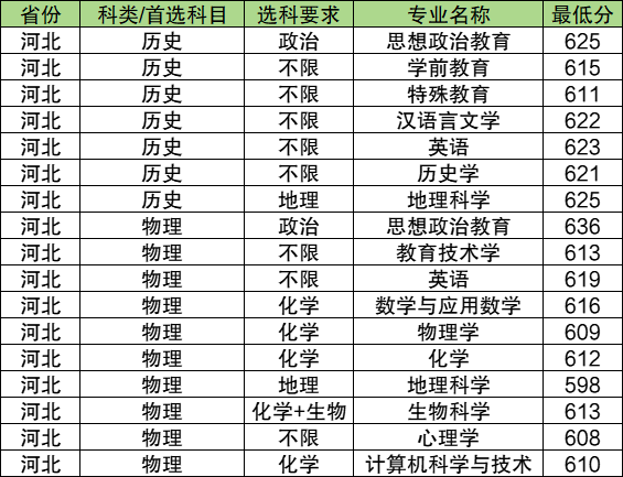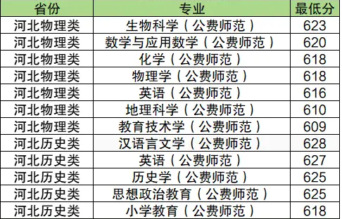 2024年河北国家公费师范招生录取中,华中师范大学历史类录取分数线为625分,物理类录取分数线为604分。