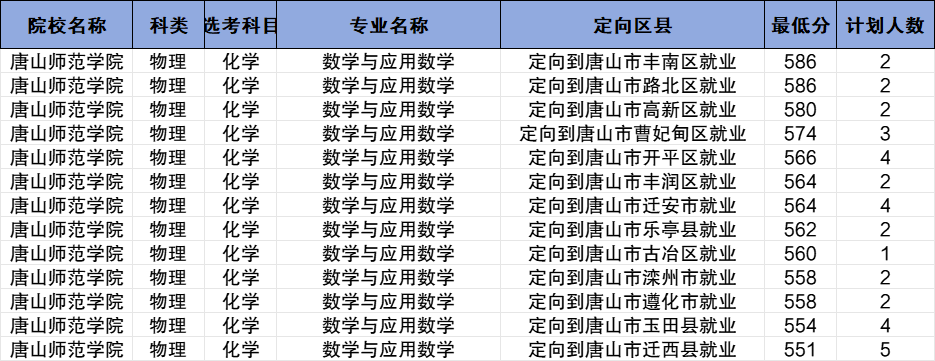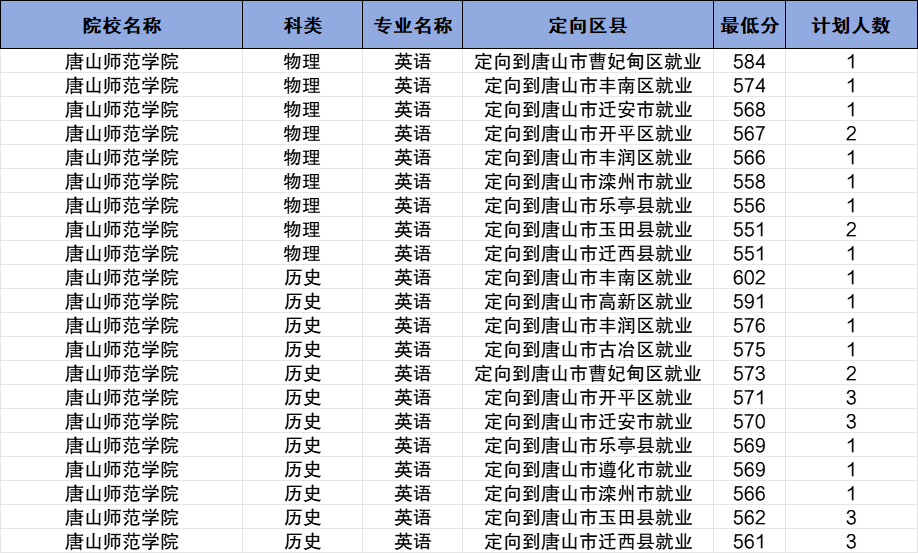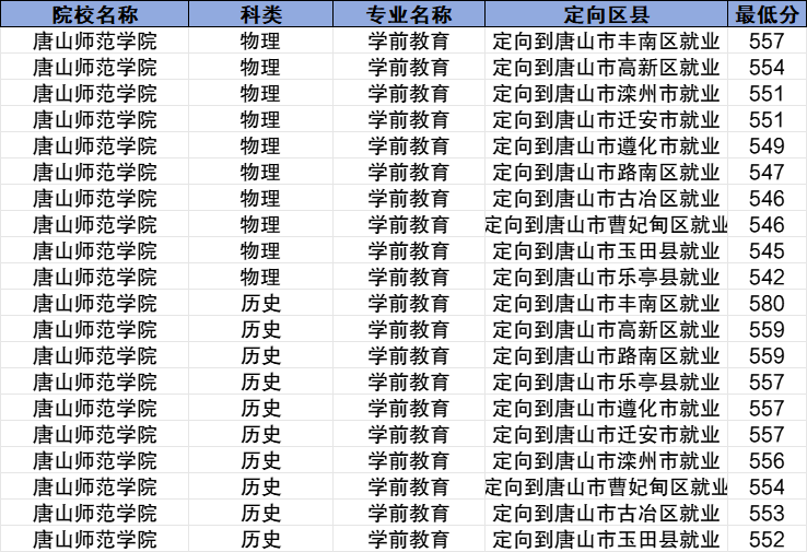 学前教育:历史最低分552分(玉田县),物理最低分542分(玉田县)。