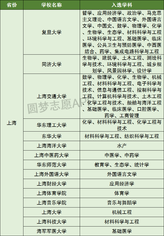 其中复旦大学有20个双一流建设学科,上海交通大学有18个双一流建设学科,同济大学有8个双一流建设学科,18所大学具体双一流建设学科如下。