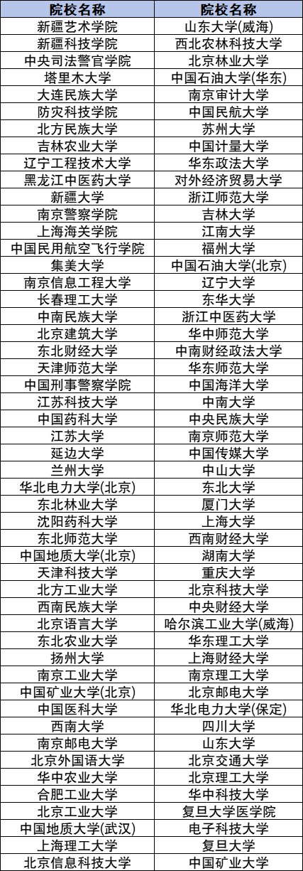新疆100所国家专项大学名单完整版: