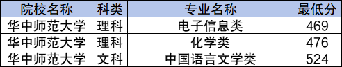 学校国家专项计划文科最低分数线是524分,对应的招生专业是中国语言文学类;理科最低分数线是469分,对应的招生专业是电子信息类。