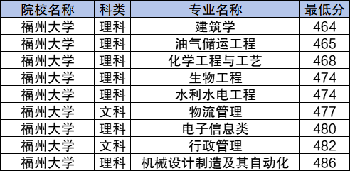 10、福州大学:文科最低477分,理科最低464分
