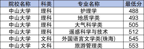 7、中山大学:文科最低545分,理科最低488分