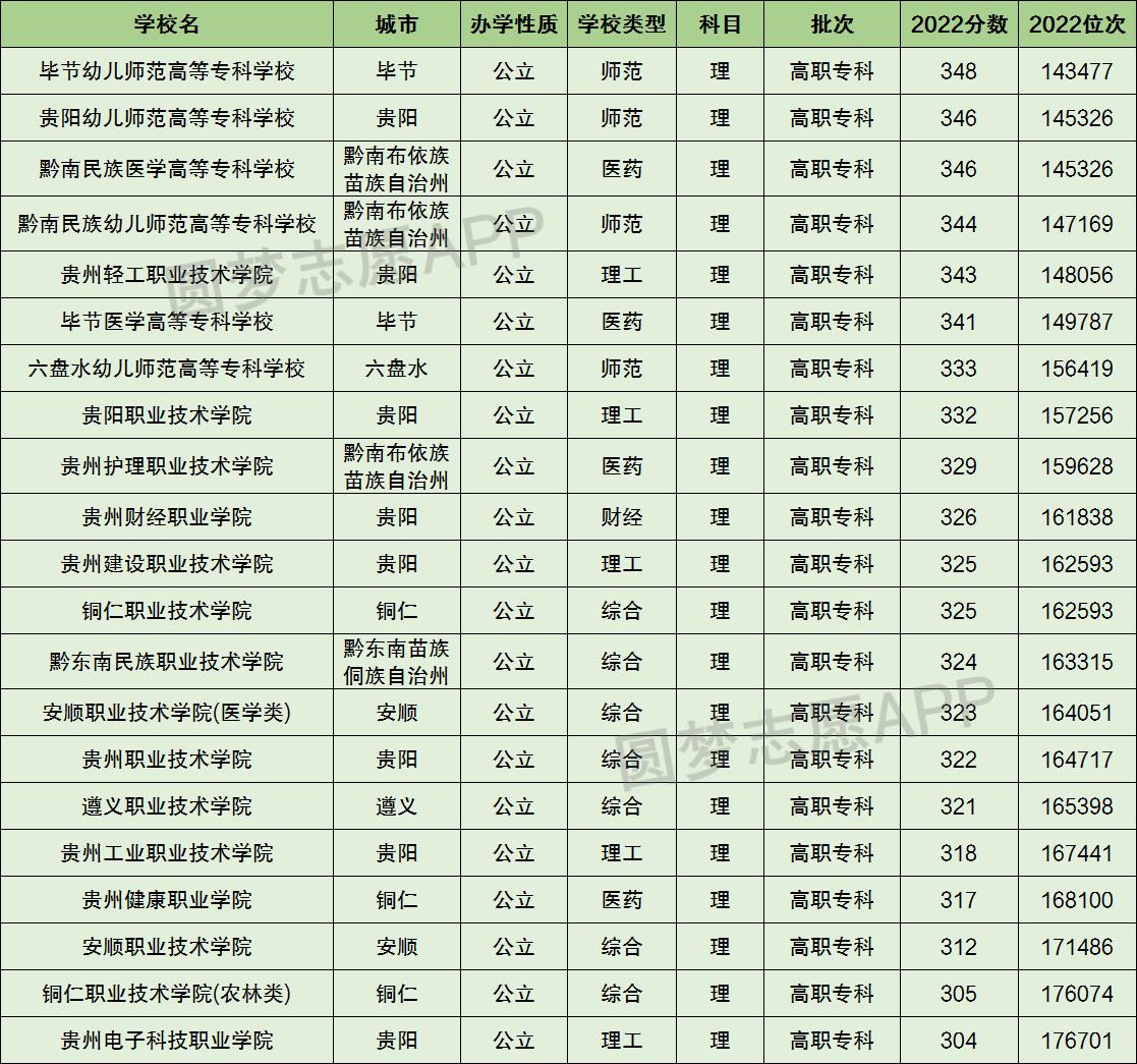 以下为2022年高考中贵州省内300到350分的大学名单,均为专科学校。