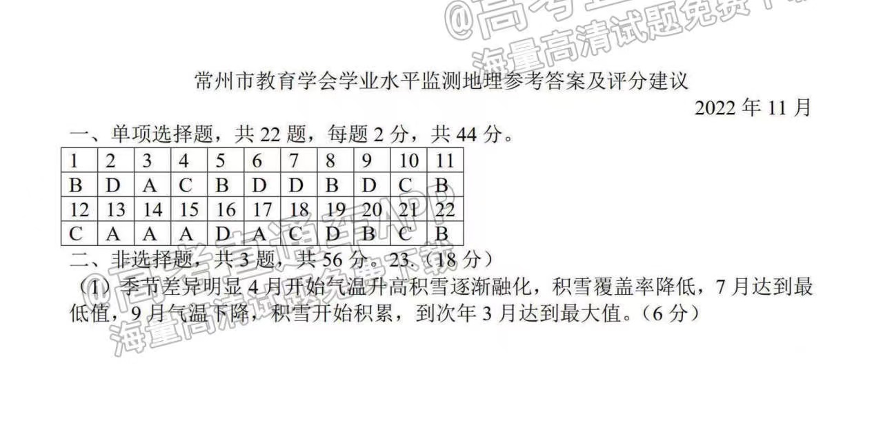 二、2023常州市高三上学期期中考试地理答案解析