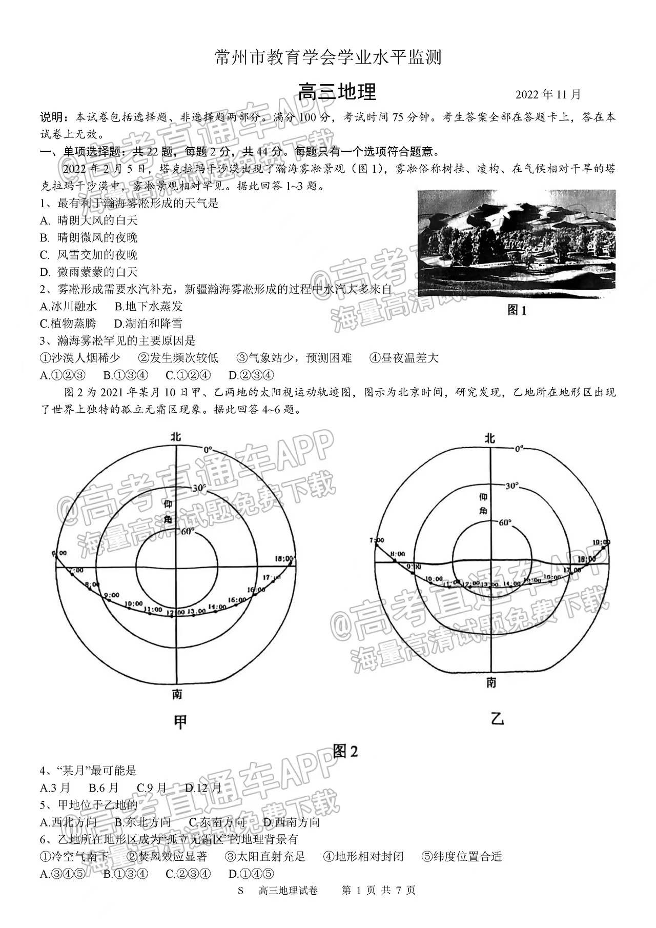 一、2023常州市高三上学期期中考试地理试卷