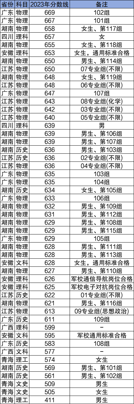 不过同学们在填报时需要注意,由于学校实力强,因此每年的录取分数线都相对较高,以下是根据学校2023年学校在各省份最低录取分,最低基本都在600分以上,因此2024年想要报考国防科技大学的同学,位次最好保持在600分以上才有机会。