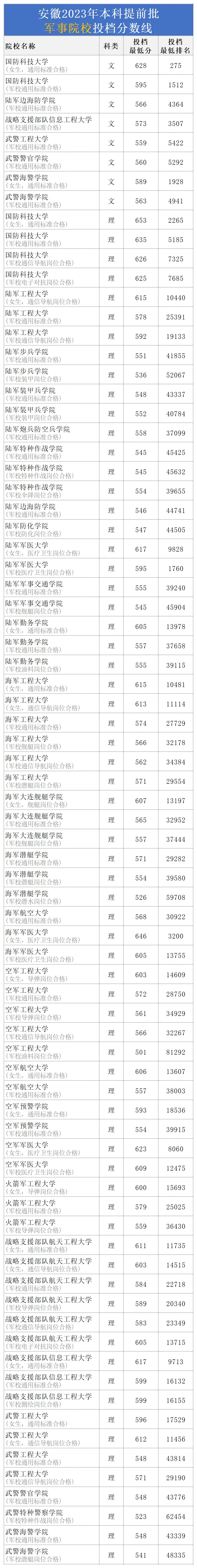 以下是为各位整理出2023年安徽提前批军校录取分数线,可供参考。