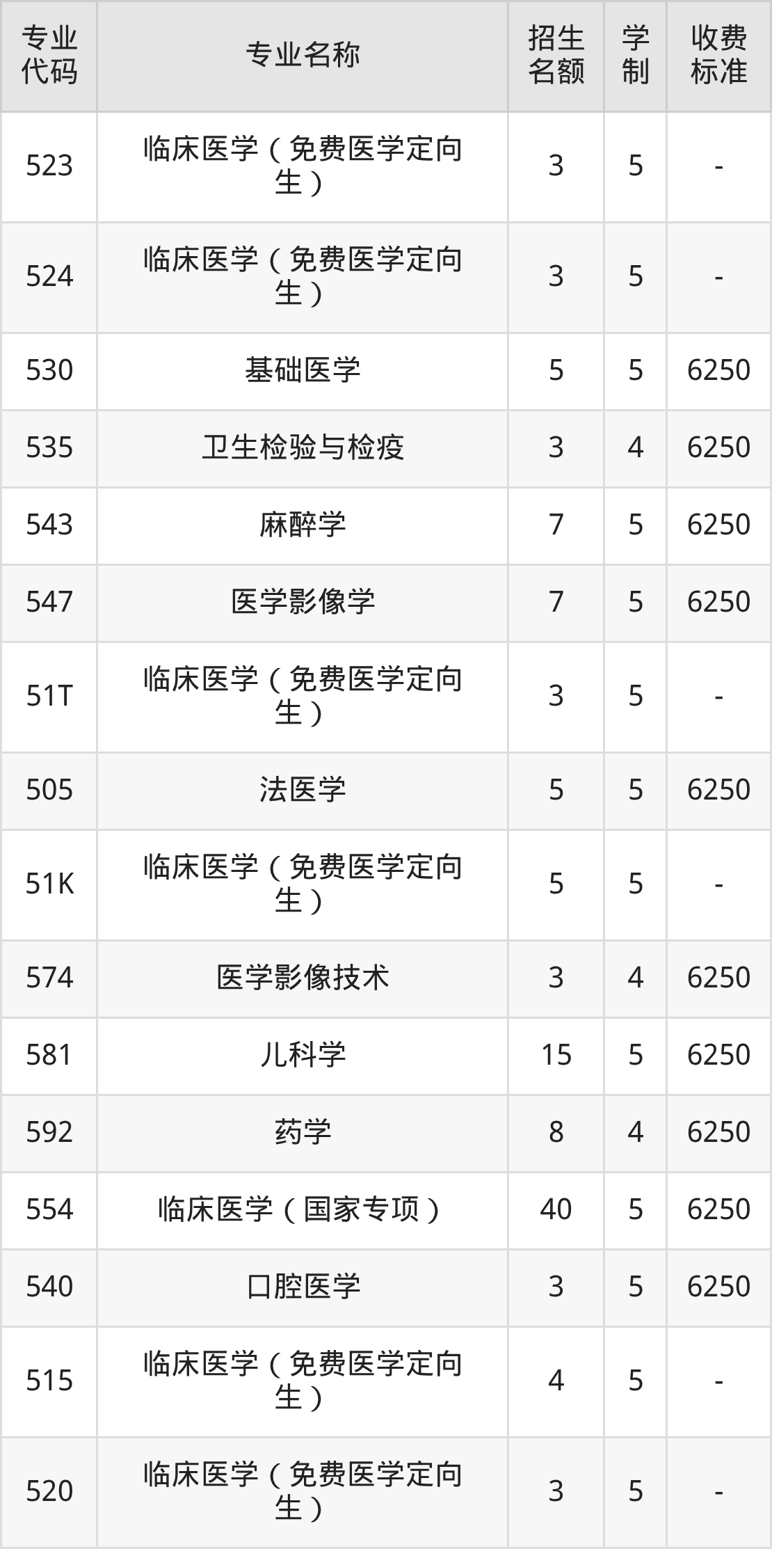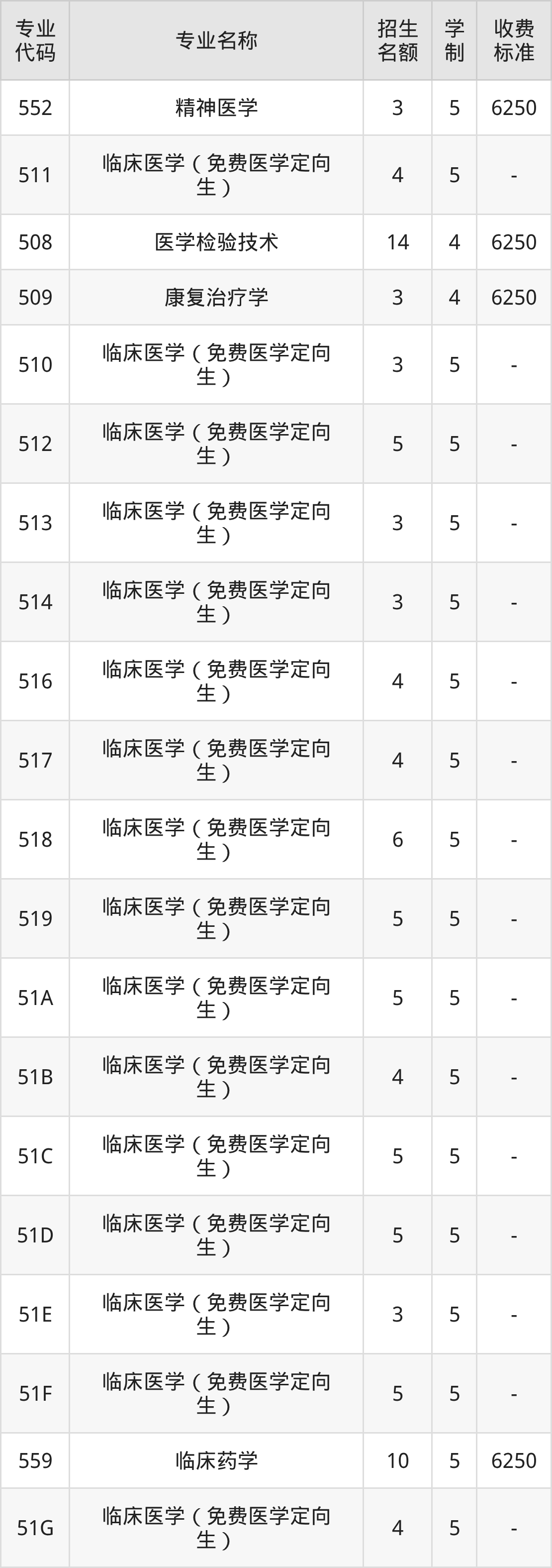 | 502 | 临床医学(5+3一体化) | 80 | 5 | 6250 |