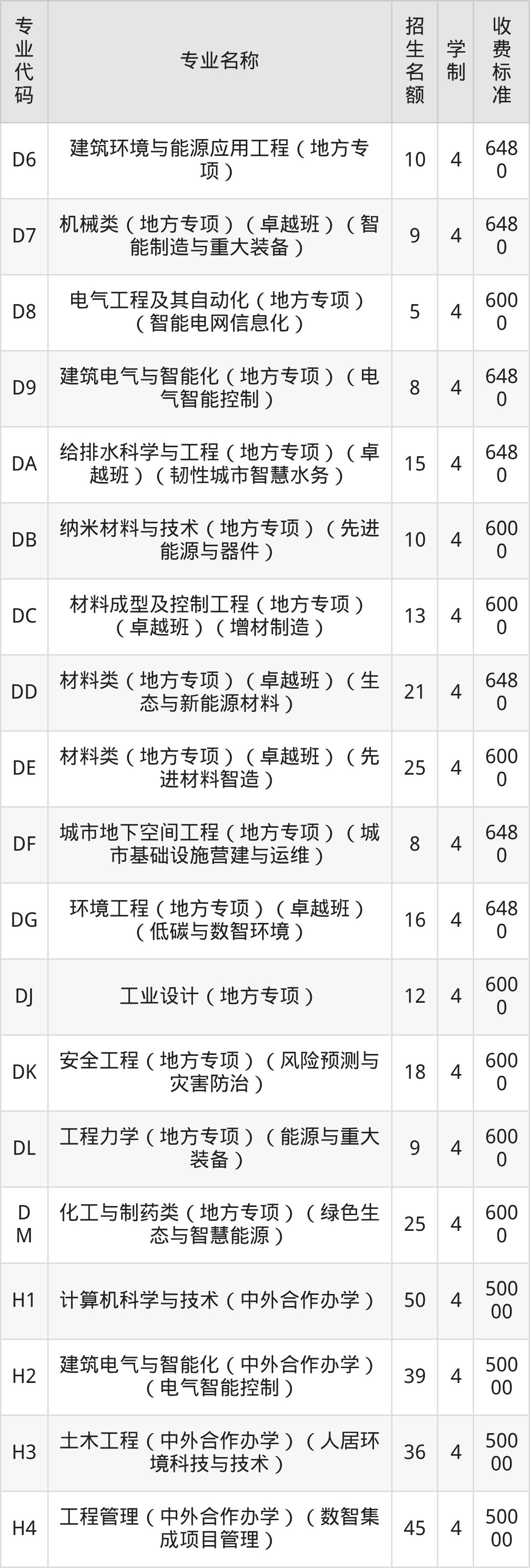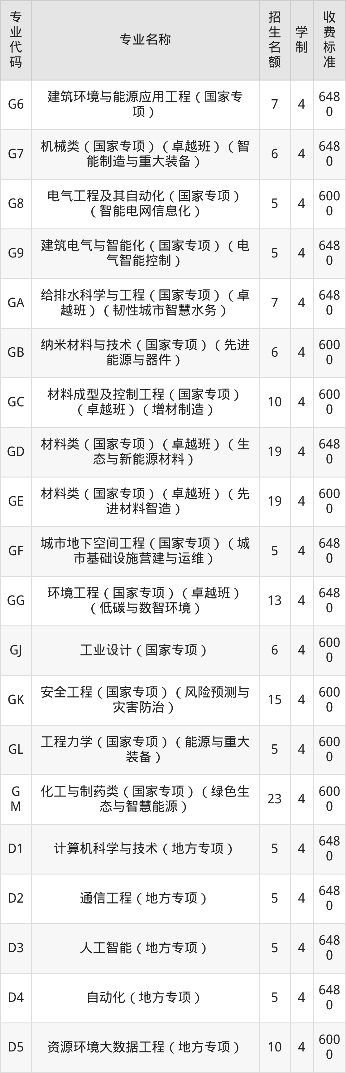 | 专业 代码 | 专业名称 | 招生 名额 | 学 制 | 收费 标准 |