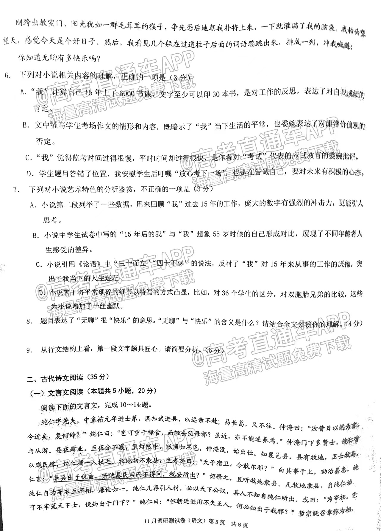 一、2023重庆高三11月联考语文试卷