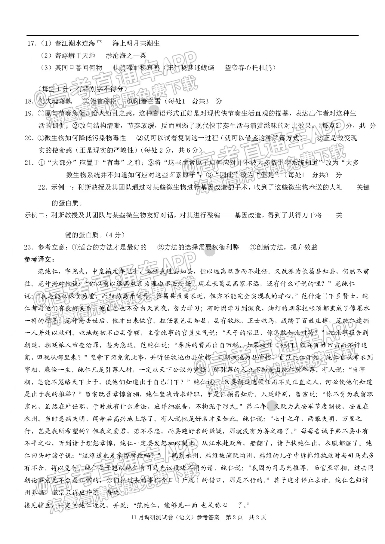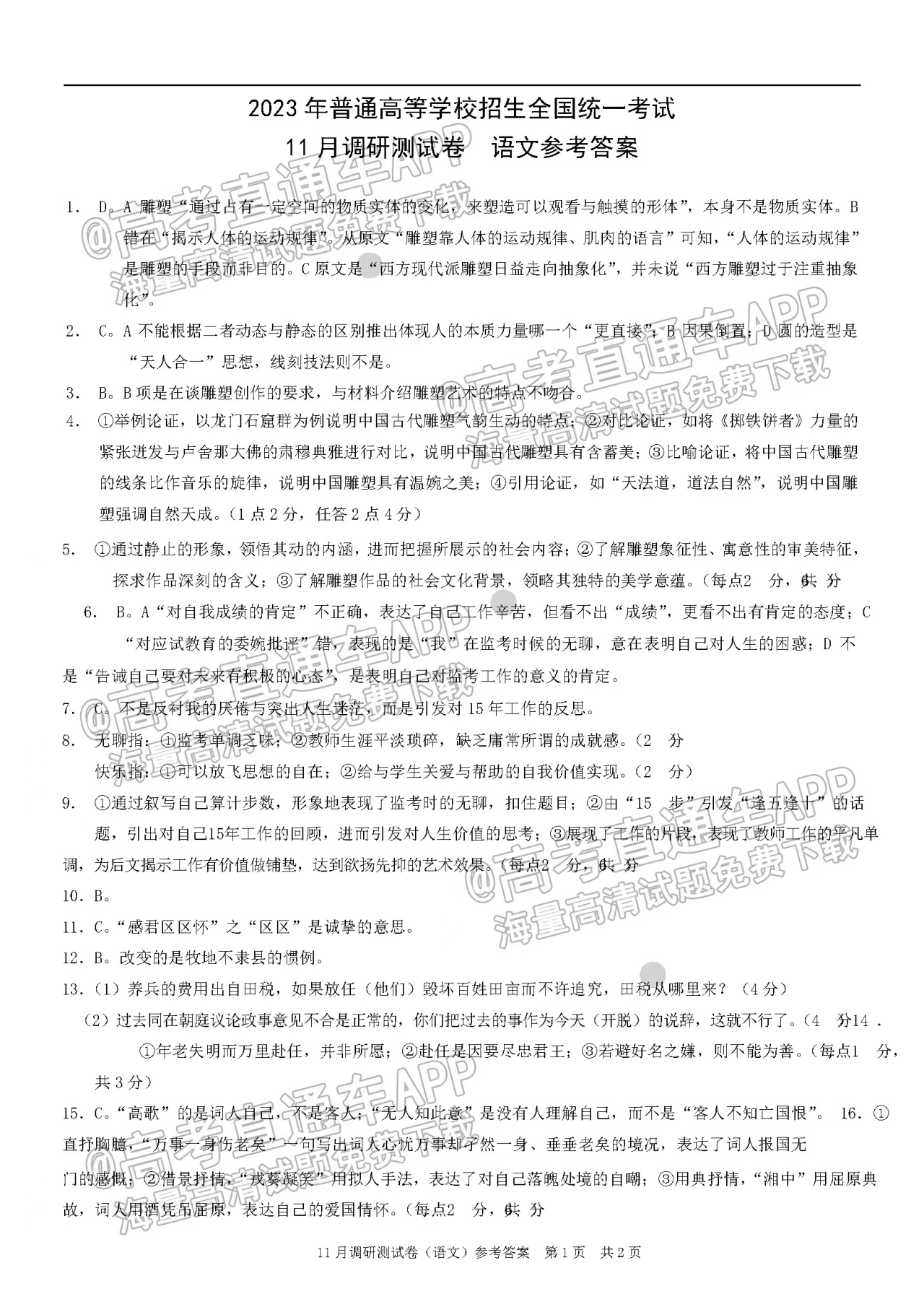 二、2023重庆高三11月联考语文参考答案