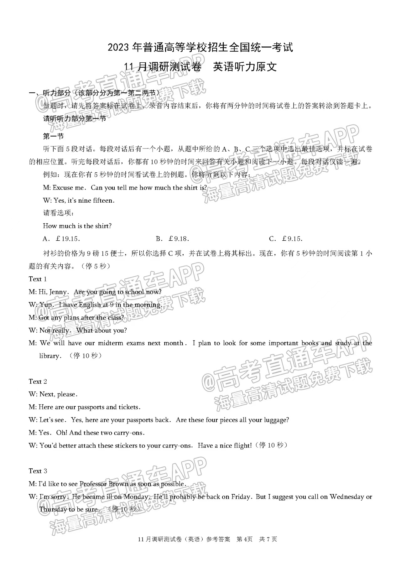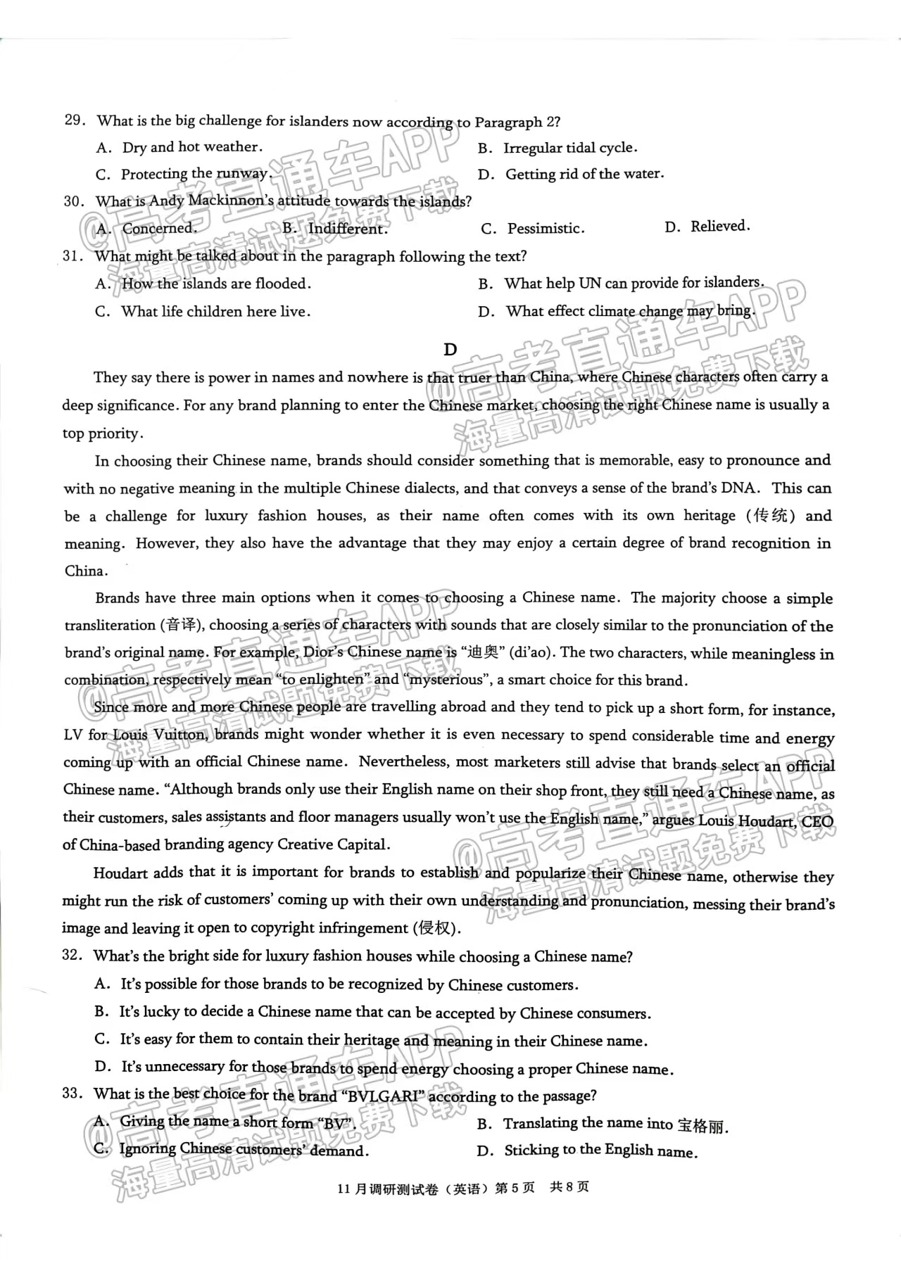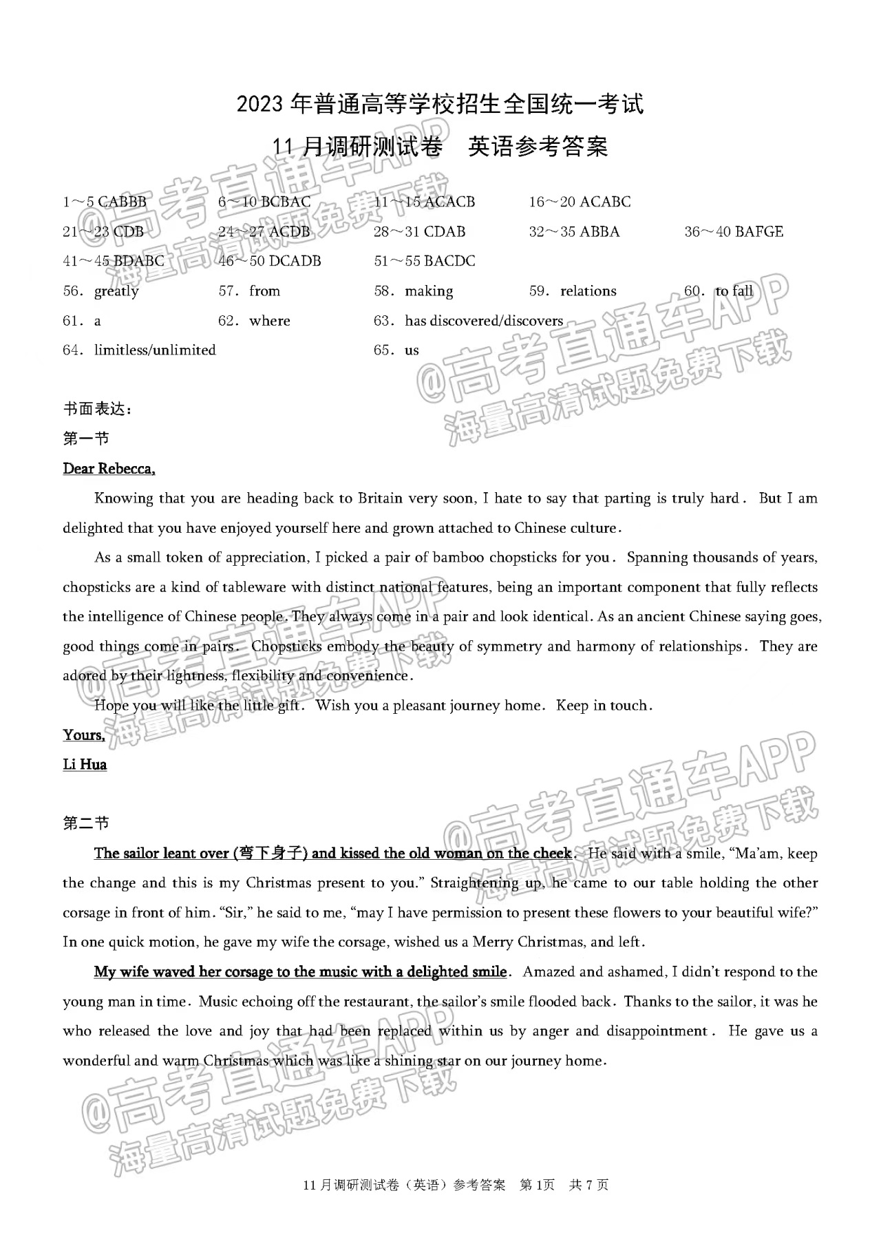 本文将公布2023届重庆高三11月调研英语科目试卷及参考答案,以便于估分,查漏补缺。
