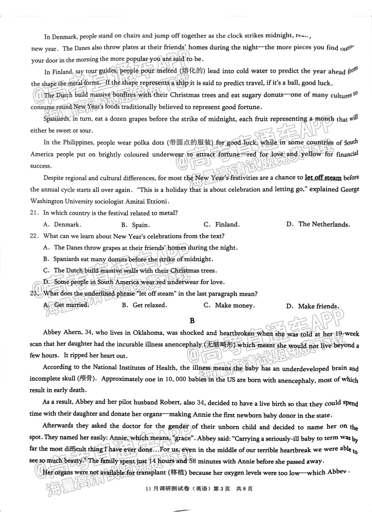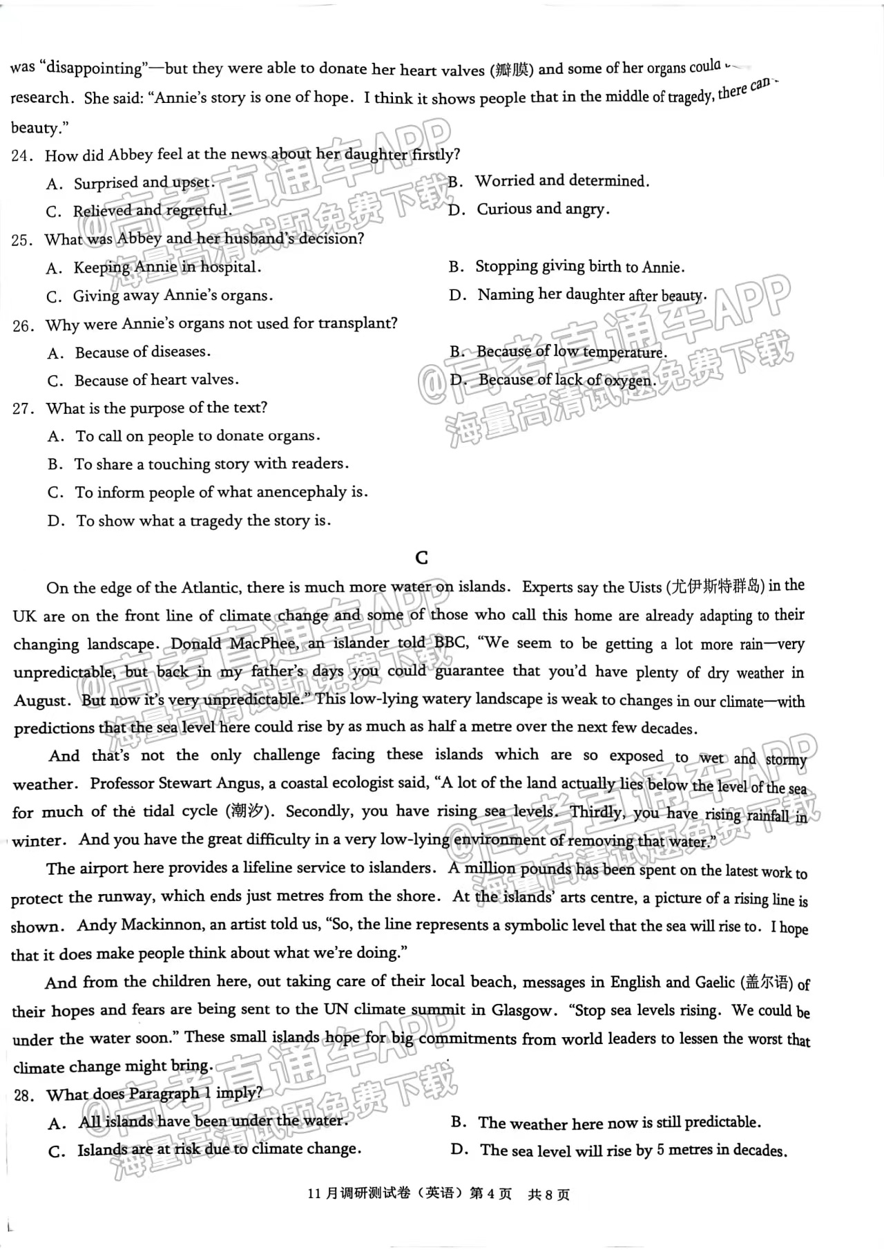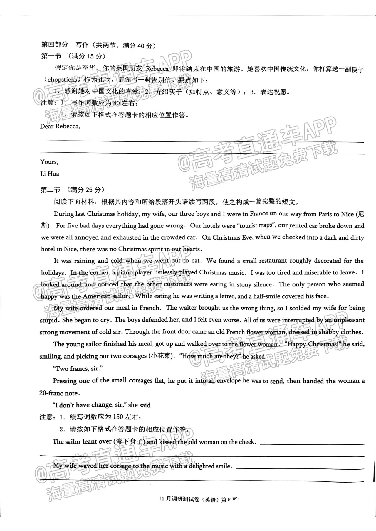 本文将公布2023届重庆高三11月调研英语科目试卷及参考答案,以便于估分,查漏补缺。