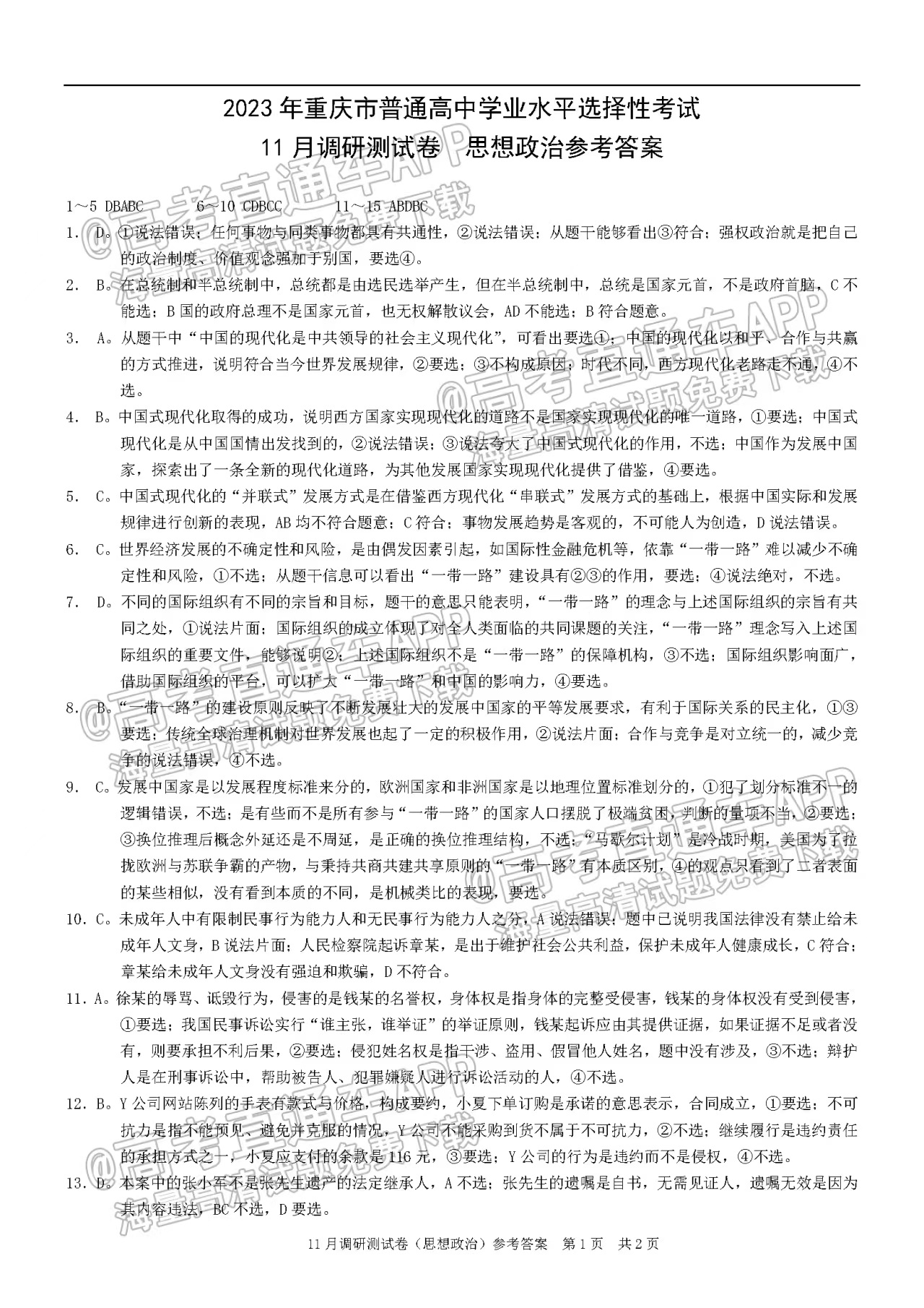 本文将公布2023届重庆高三联考政治科目试卷及参考答案,以便于估分,查漏补缺。