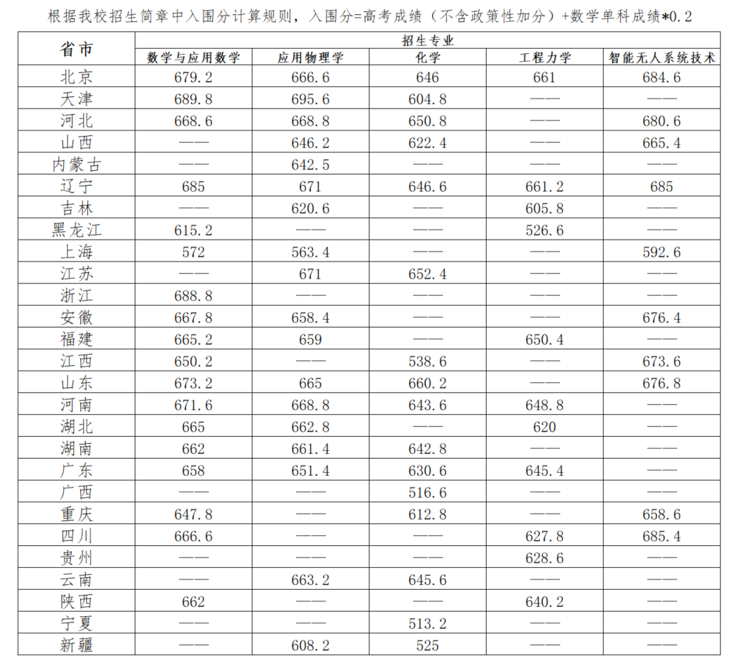 安徽:数学与应用数学667.8分、应用物理658.4分、智能无人系统技术676.4分。