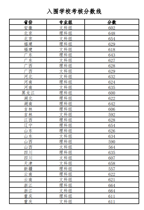 安徽:汉语言文学(古文字学)入围分数线549分、历史学589分、数学与应用数学597分;
