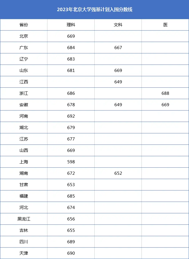 在所有强基计划院校中,北京大学是最受大家关注的高校之一,我们也在此为大家整理了2023年北大面向全国各省市的强基计划入围分数线。