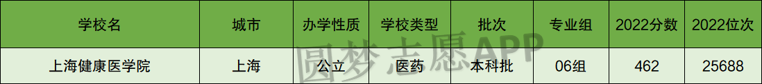 其中分数为462分的上海健康医学院,对应全市最低位次为215213。