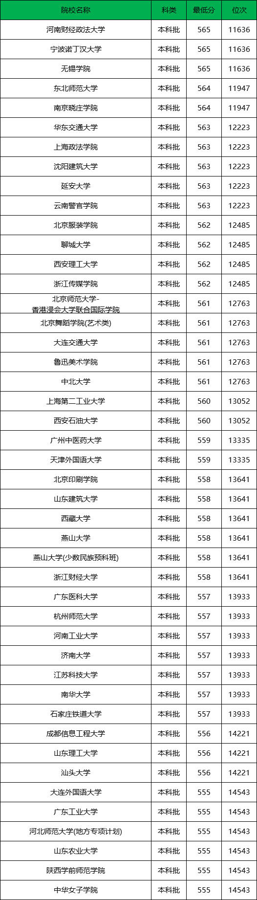 因此河北历史560分左右的考生能上的好大学其实也是比较多的。