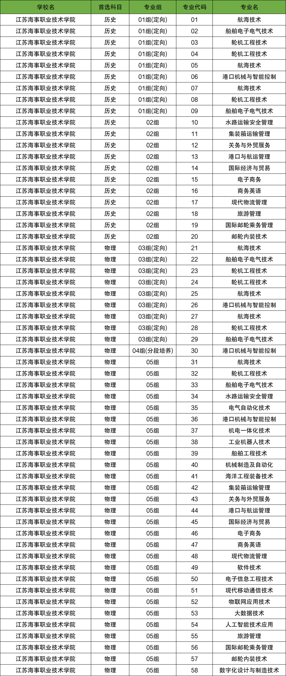 江苏海事职业技术学院志愿填报专业代码一览表: