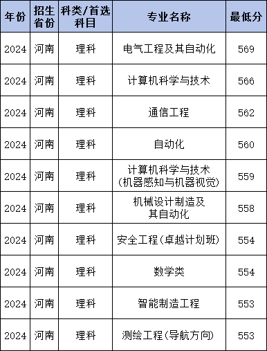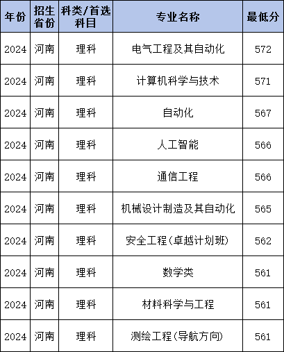 2024年河南理工大学国家专项计划在河南录取最低分理科为561分,理科收分最低的专业为数学类、材料科学与工程和测绘工程(导航方向)。