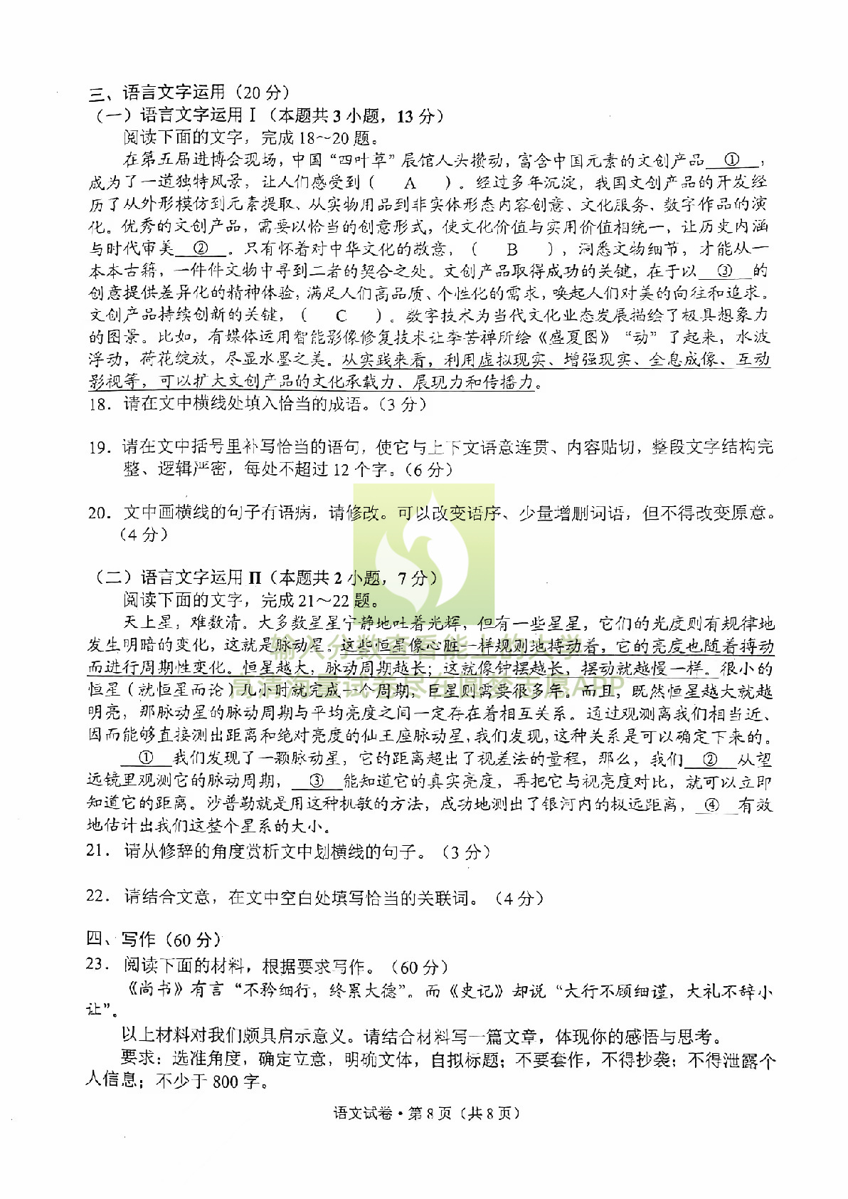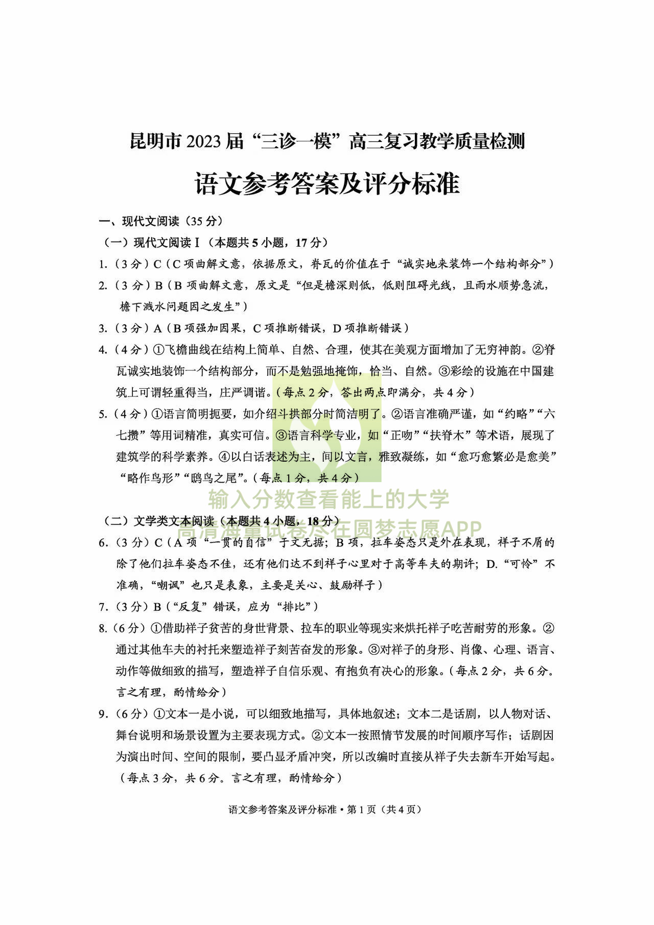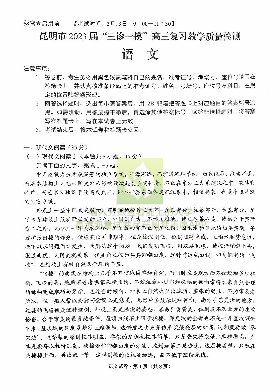 一、2023昆明三诊一模语文试卷及答案解析