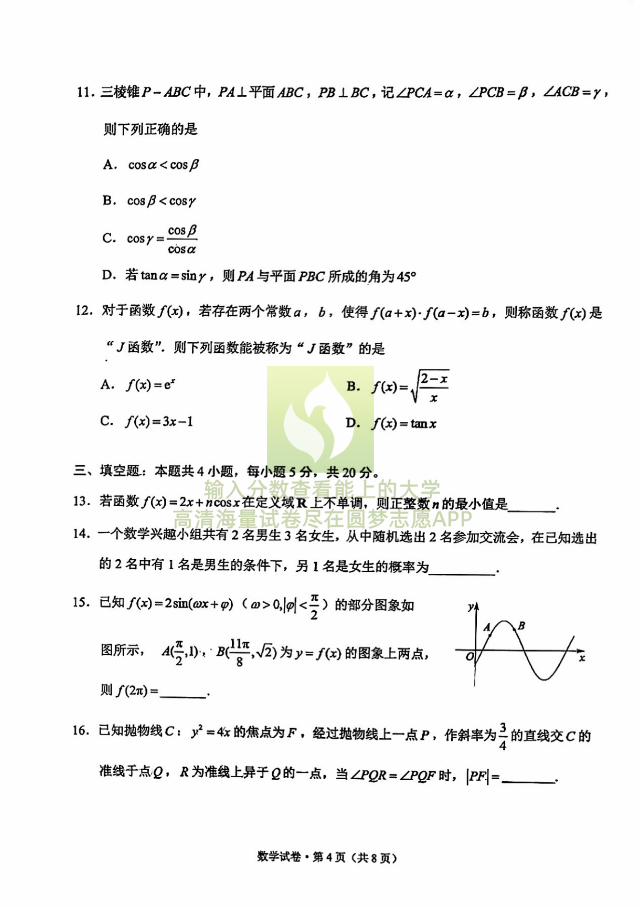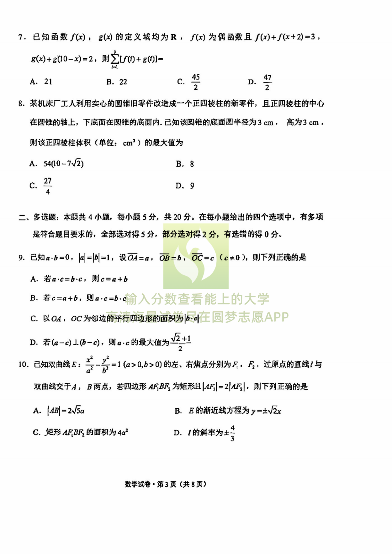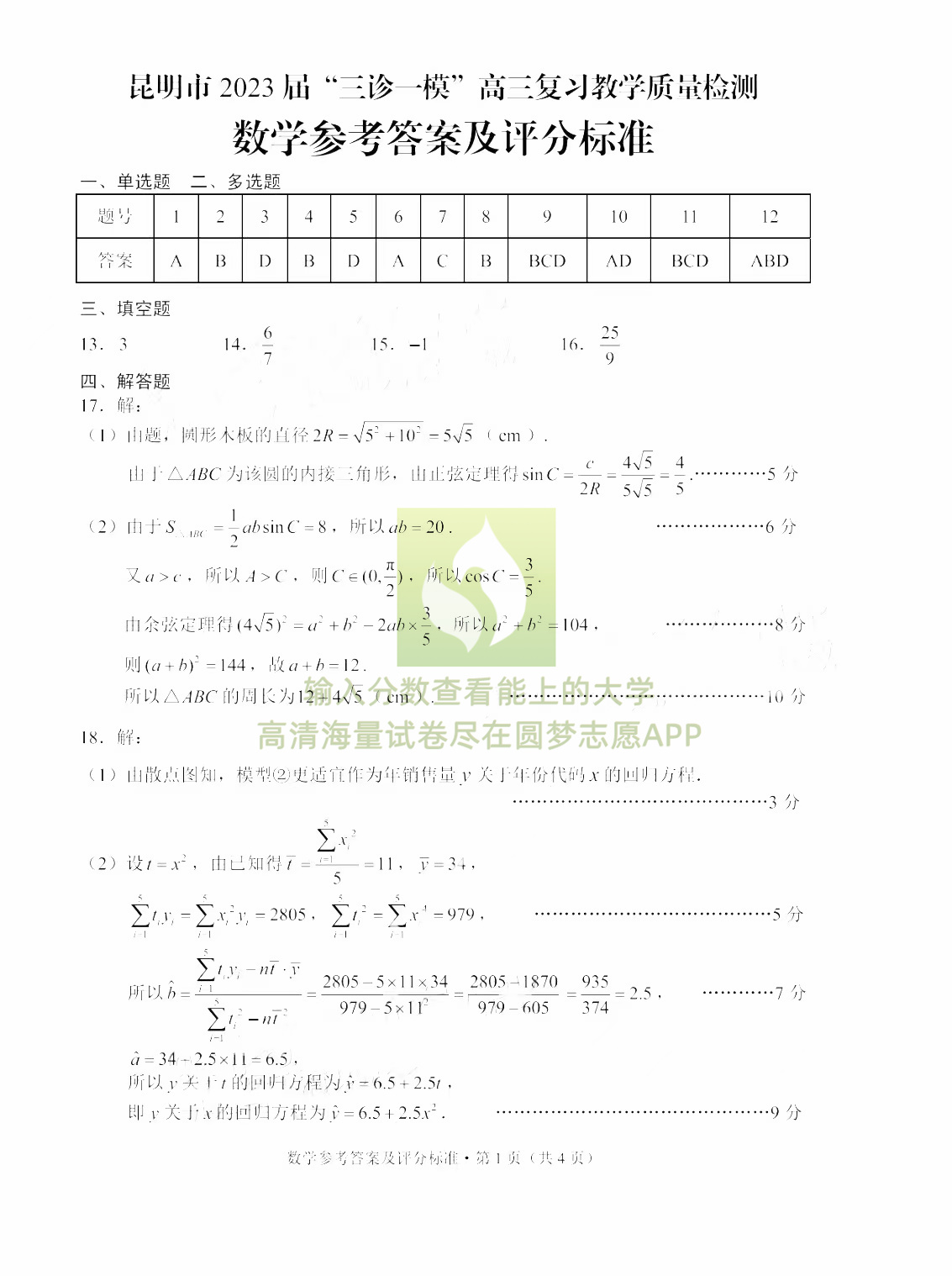 二、2023昆明三诊一模数学试卷及答案解析