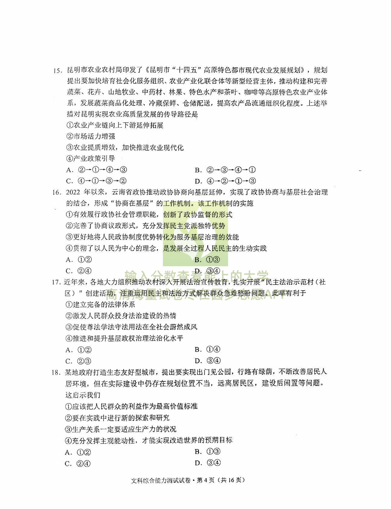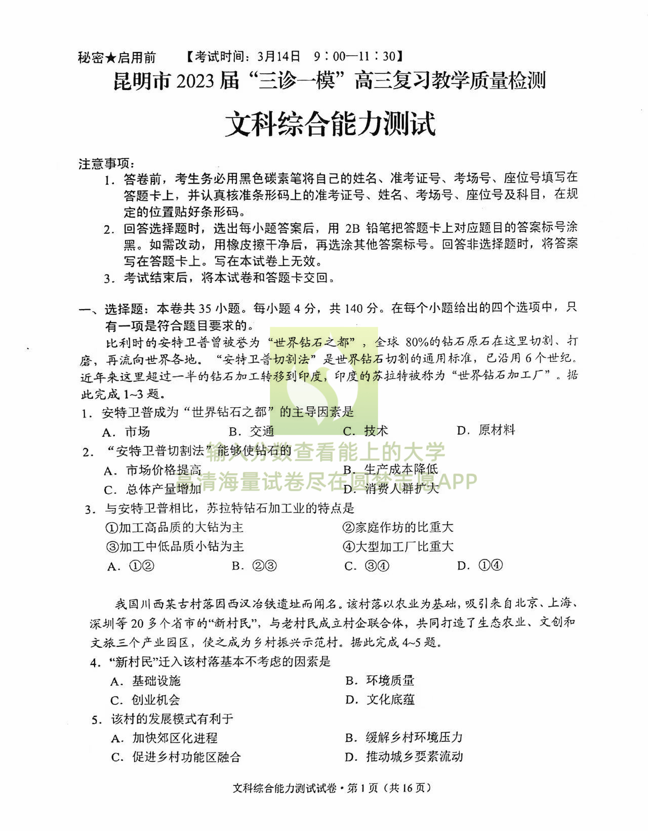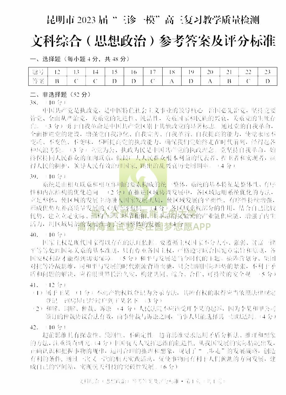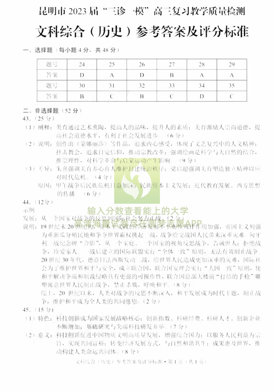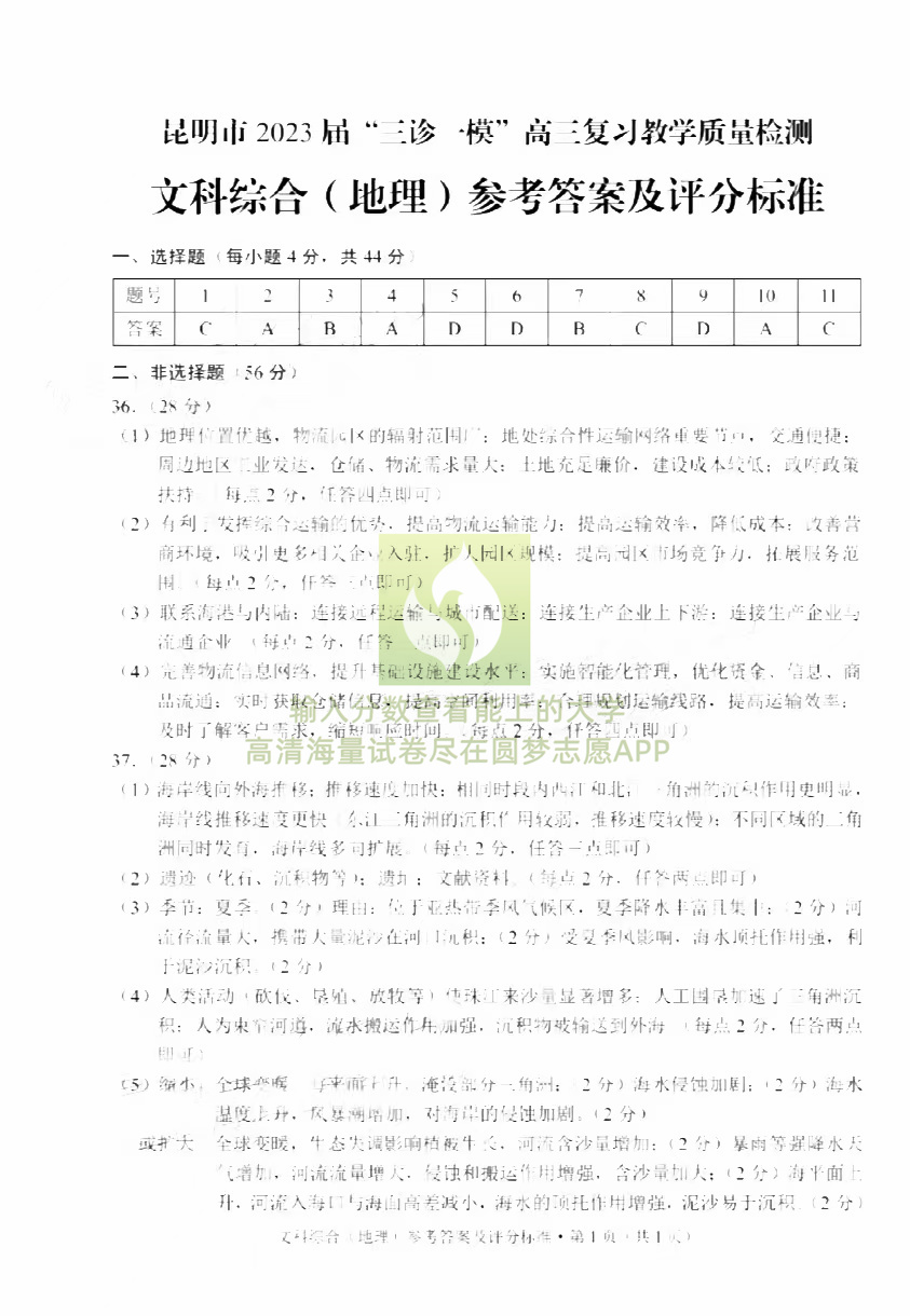 四、2023昆明三诊一模文综试卷及答案解析