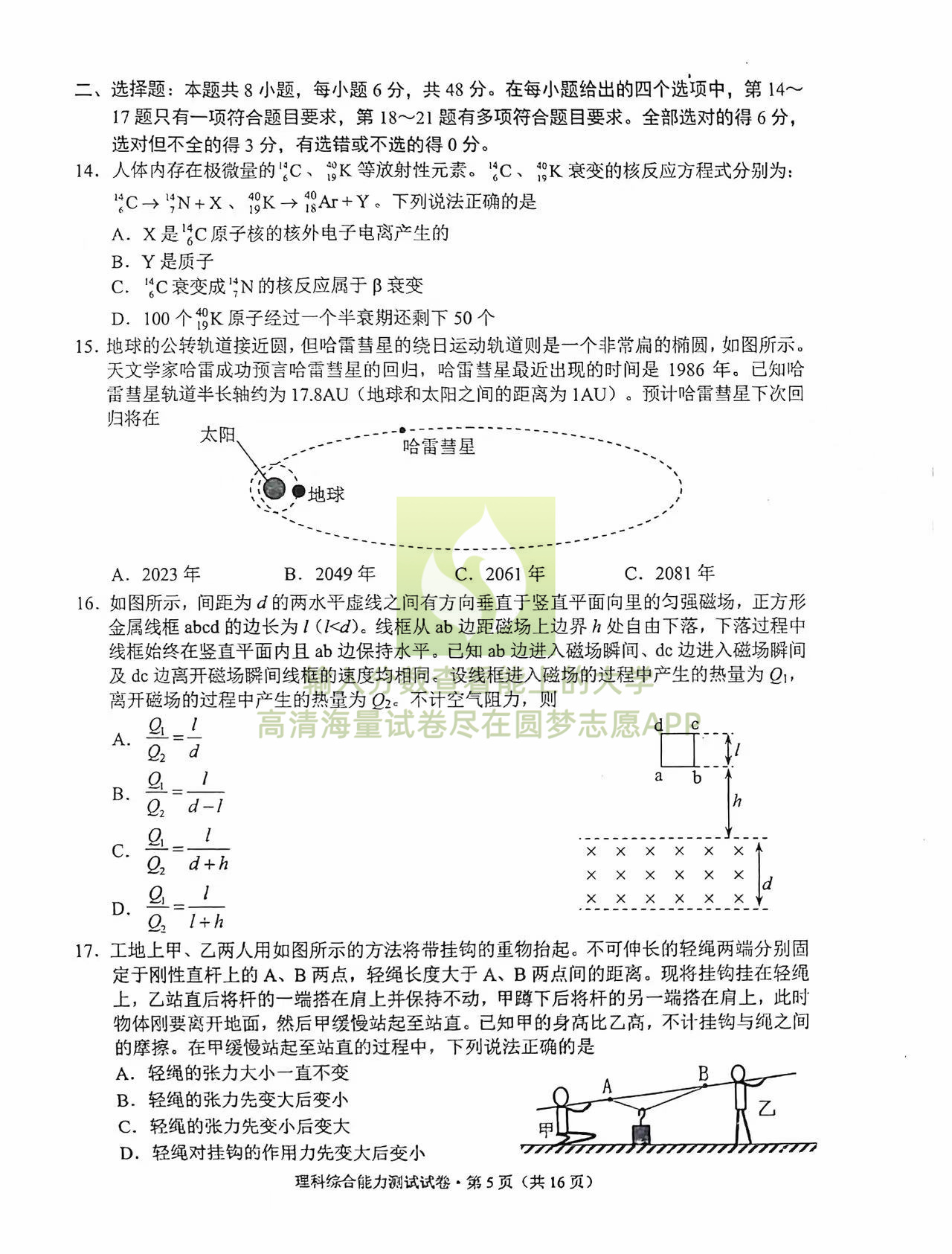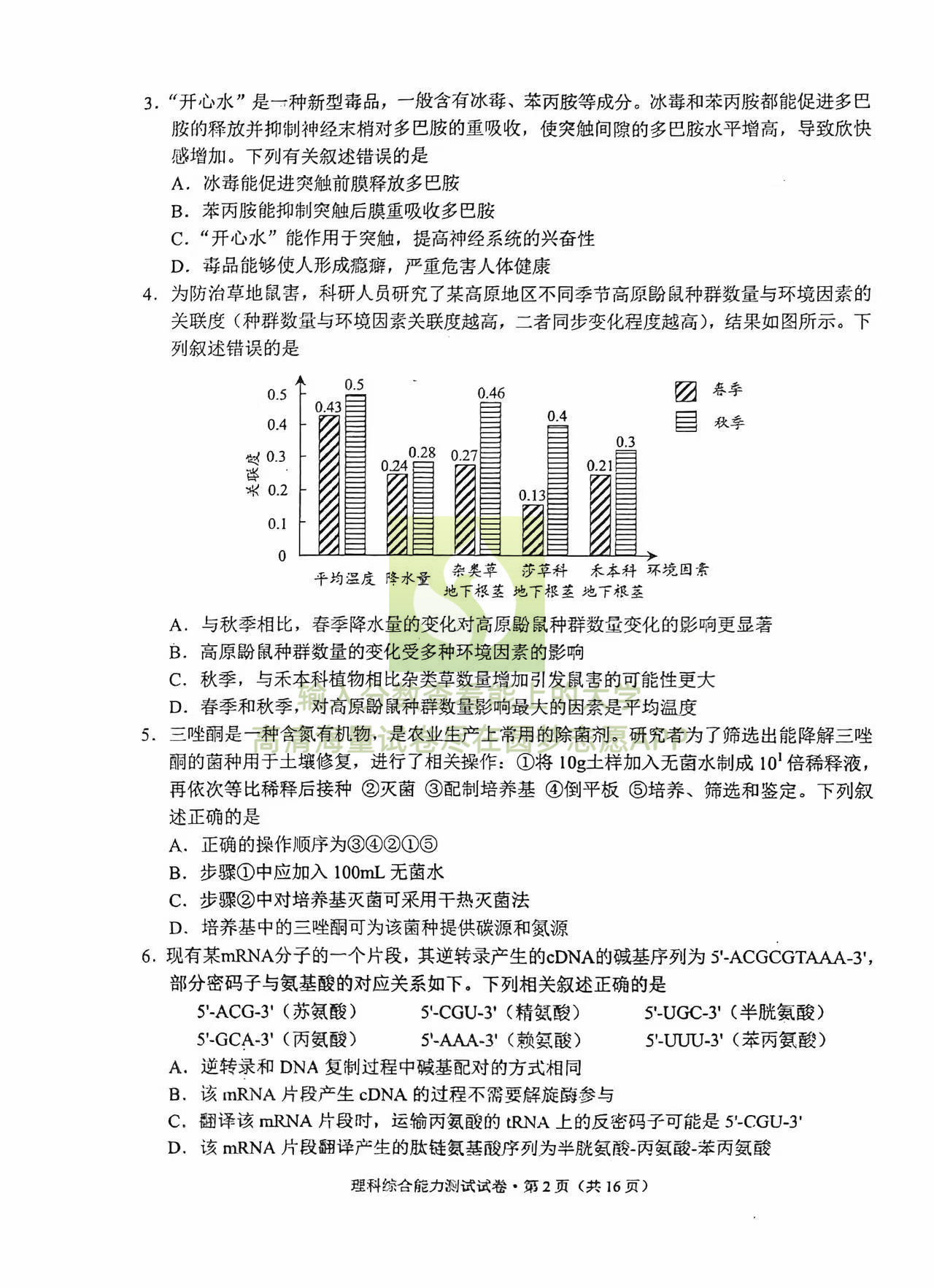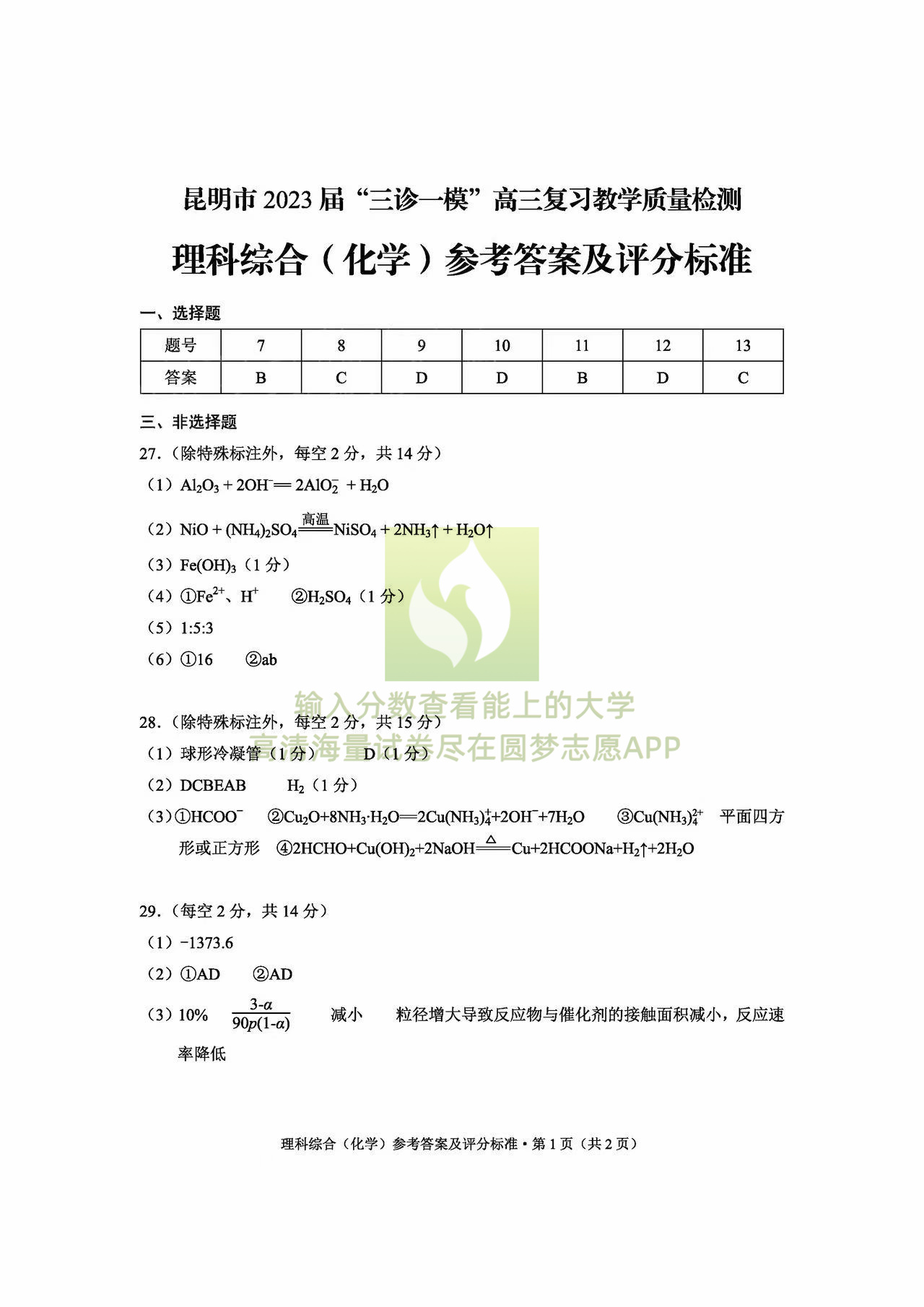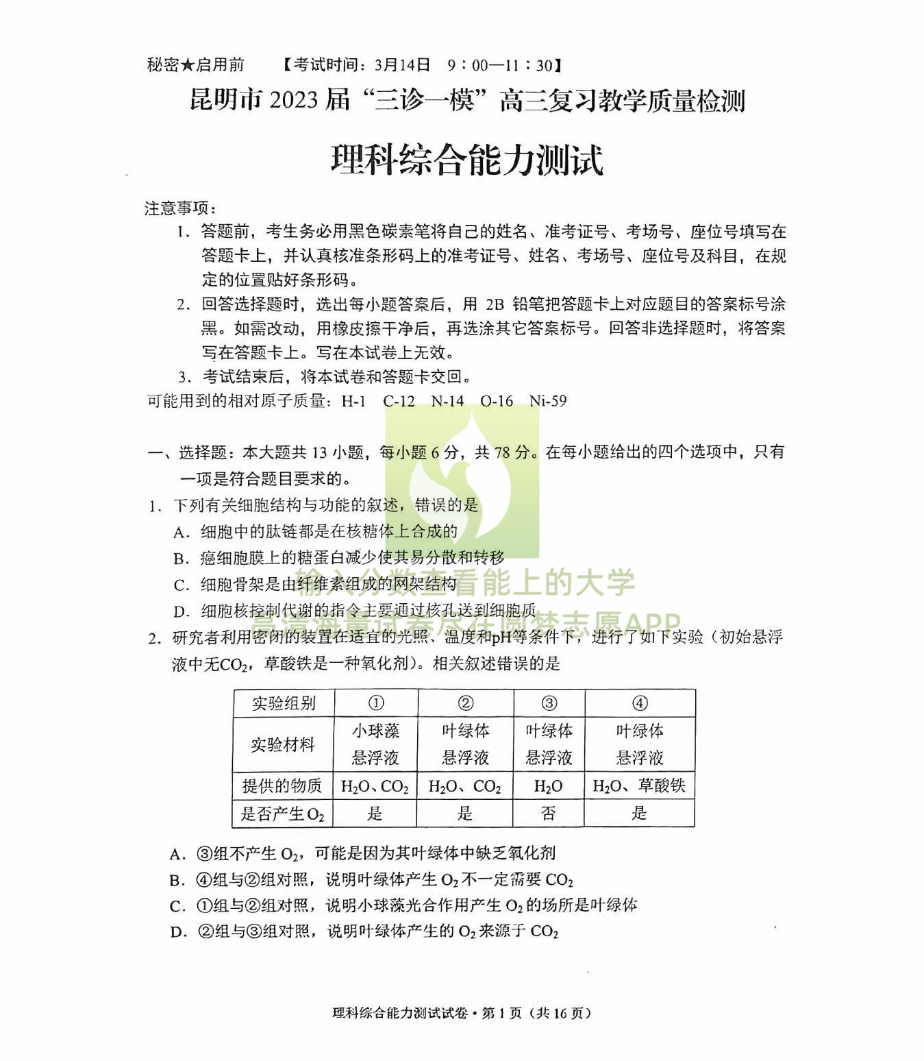 五、2023昆明三诊一模理综试卷及答案解析