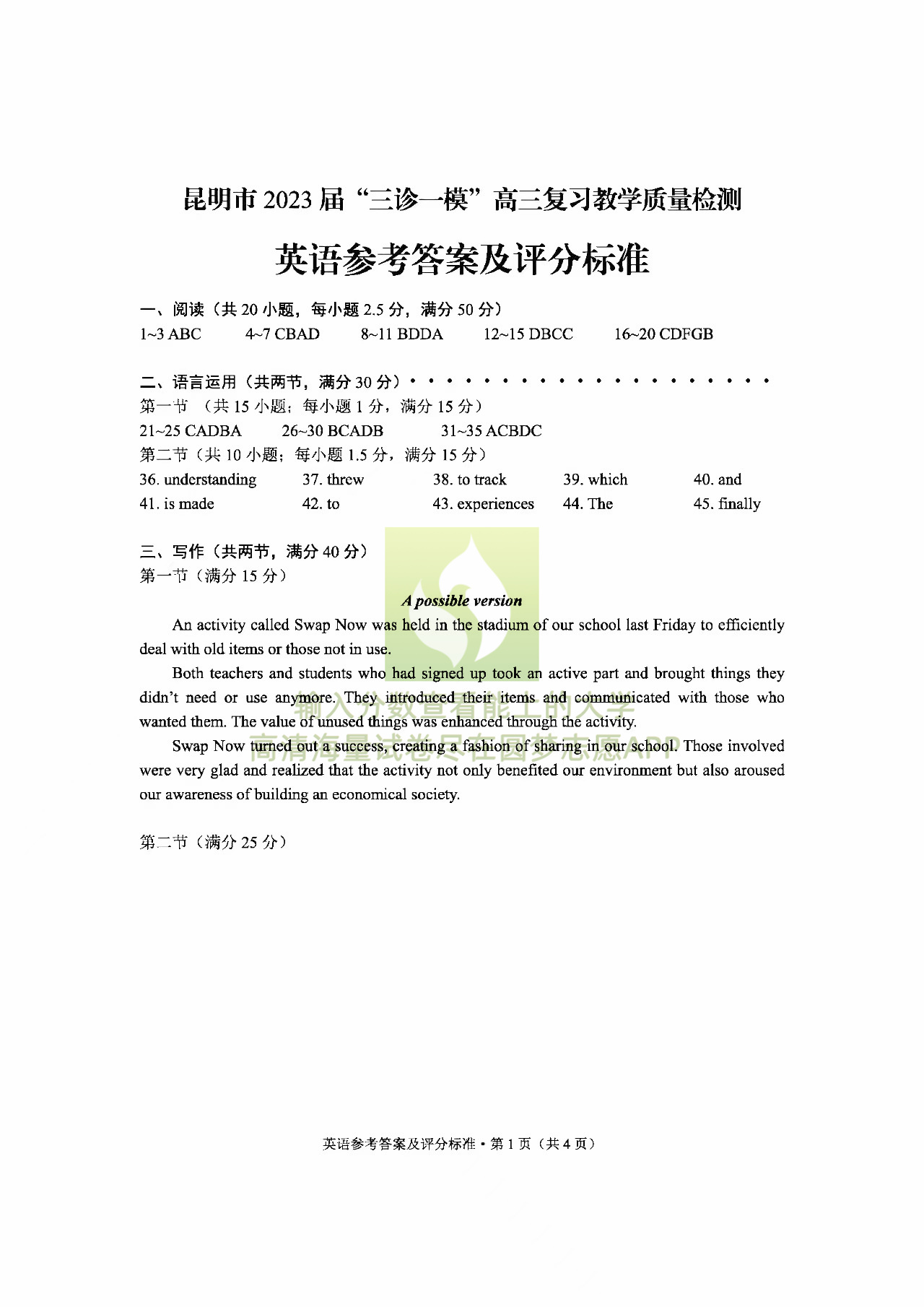 三、2023昆明三诊一模英语试卷及答案解析